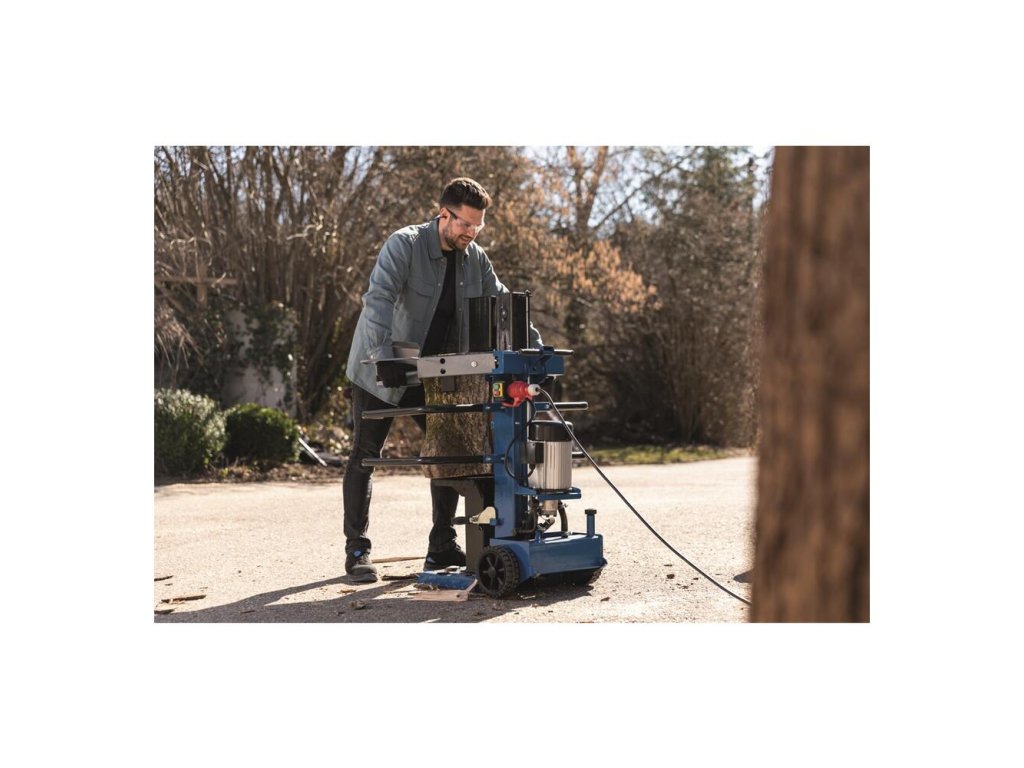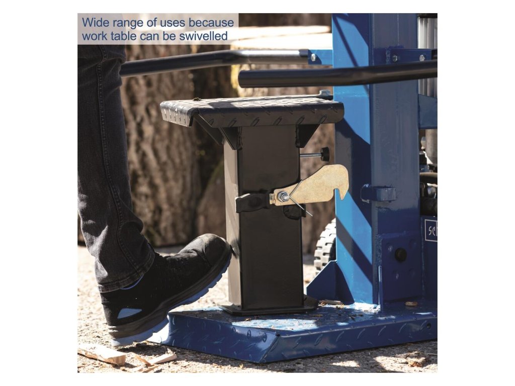 Stroj je vybavený rýchlym a automatickým systémom návratu piestu, bezpečnostným dvojručným ovládaním, nízkou základňou s výsuvom pre dokonalú stabilitu, prídavným výkyvným stolom na štiepanie polien rôznej dĺžky v rôznych výškach, bezpečnostnými ramenami na ochranu polien pred vypadnutím a masívnym výsuvným štiepacím klinom, ktorý si poradí s polenami s priemerom až 350 mm.