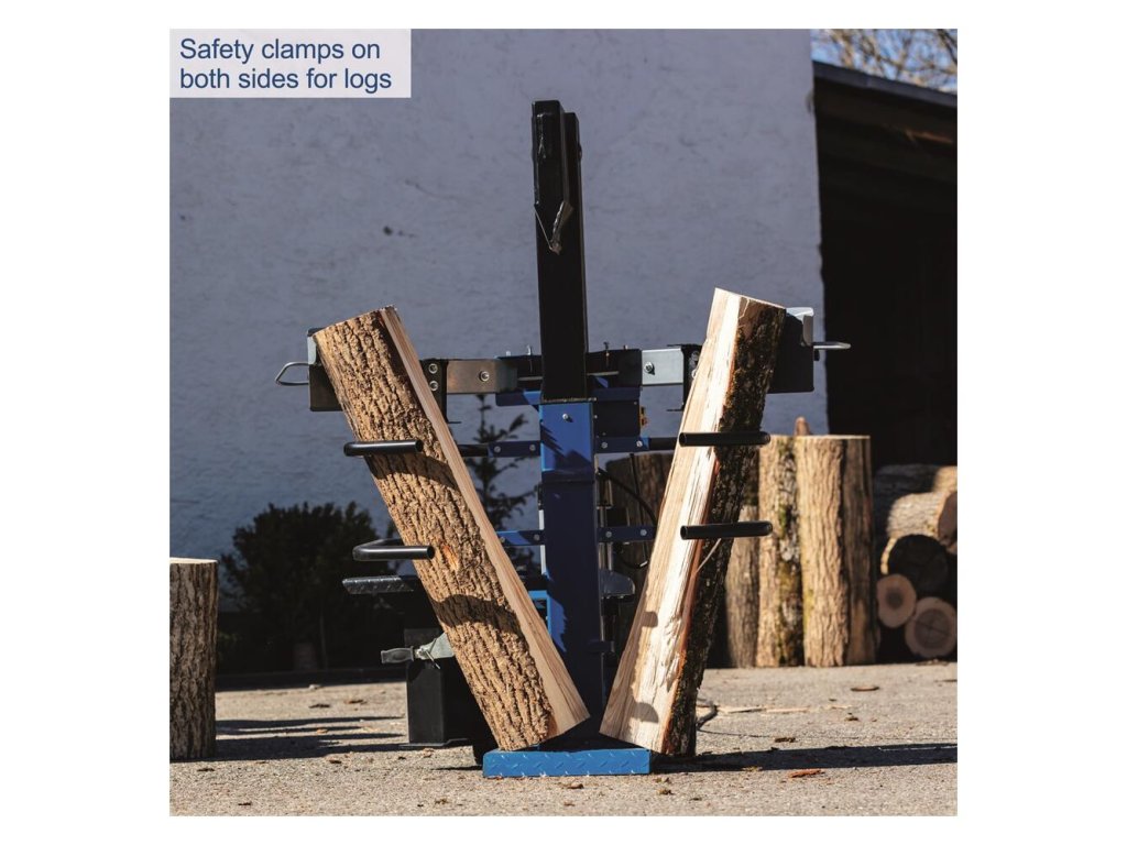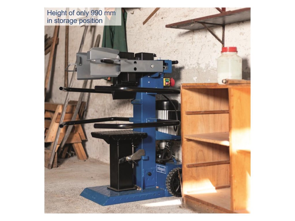 Stroj je vybavený rýchlym a automatickým systémom návratu piestu, bezpečnostným dvojručným ovládaním, nízkou základňou s výsuvom pre dokonalú stabilitu, prídavným výkyvným stolom na štiepanie polien rôznej dĺžky v rôznych výškach, bezpečnostnými ramenami na ochranu polien pred vypadnutím a masívnym výsuvným štiepacím klinom, ktorý si poradí s polenami s priemerom až 350 mm.