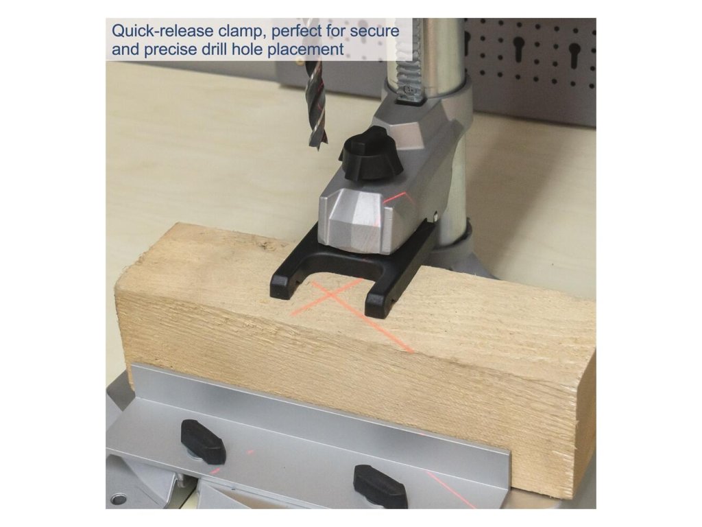 Pracovný stôl je vybavený rýchloupínacím upínačom, ktorý umožňuje upínať obrobky rôznych tvarov, ako aj drážkami, do ktorých môžete upnúť príslušenstvo, ako je napríklad štandardne dodávané paralelné vedenie.