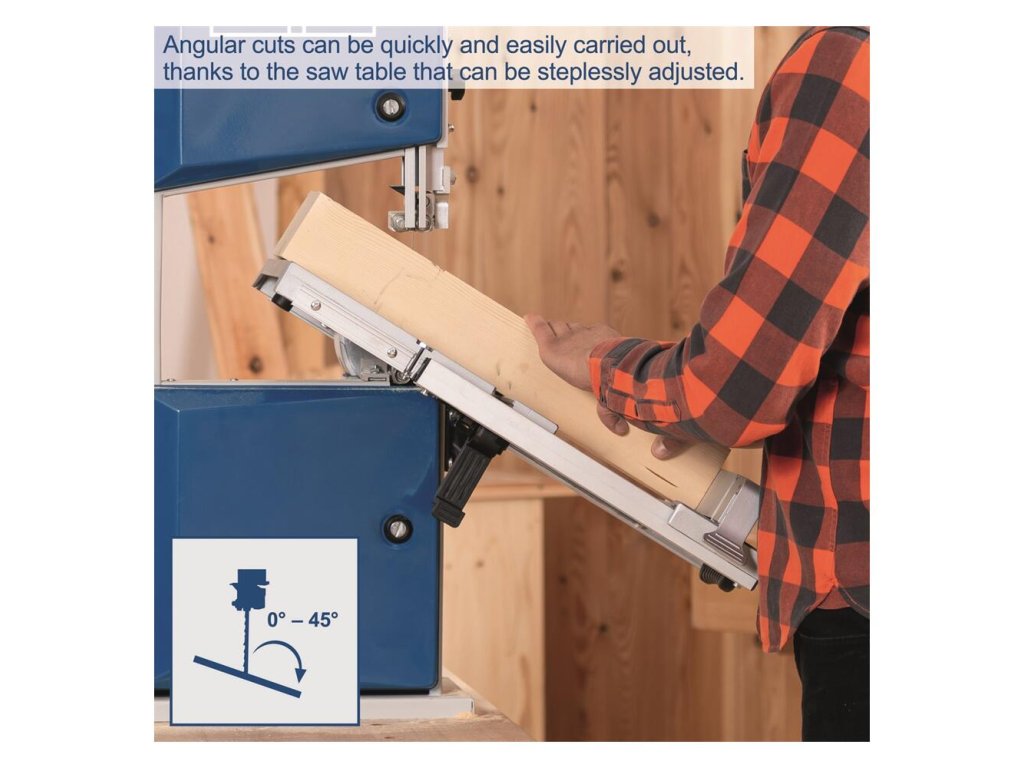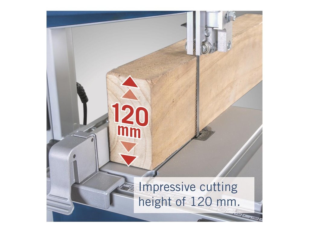 Píla má vysoký záber 120 mm a vďaka systému vodiacich kladiek, ktorý zabraňuje vychýleniu pílového kotúča, je výsledný rez veľmi presný.