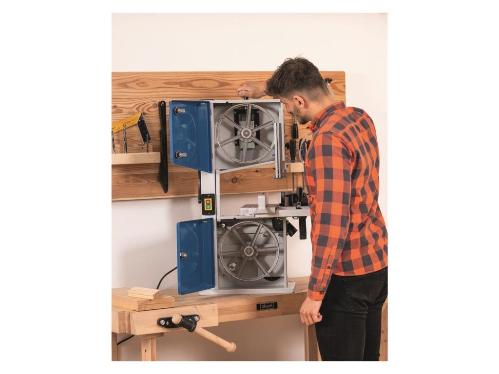 Vďaka výklopnej bočnej stene je výmena pílového listu veľmi jednoduchá.