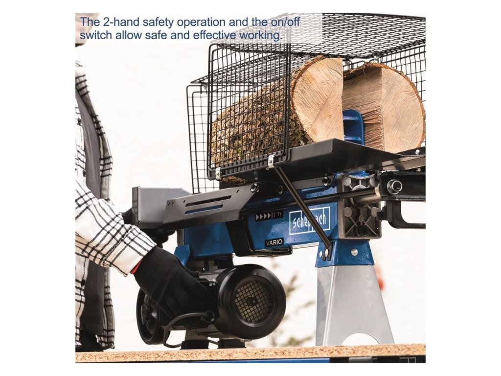 Napriek svojim kompaktným rozmerom dokáže vyvinúť vysoký tlak až 7 ton a dokáže štiepať polená dlhé až 52 cm.