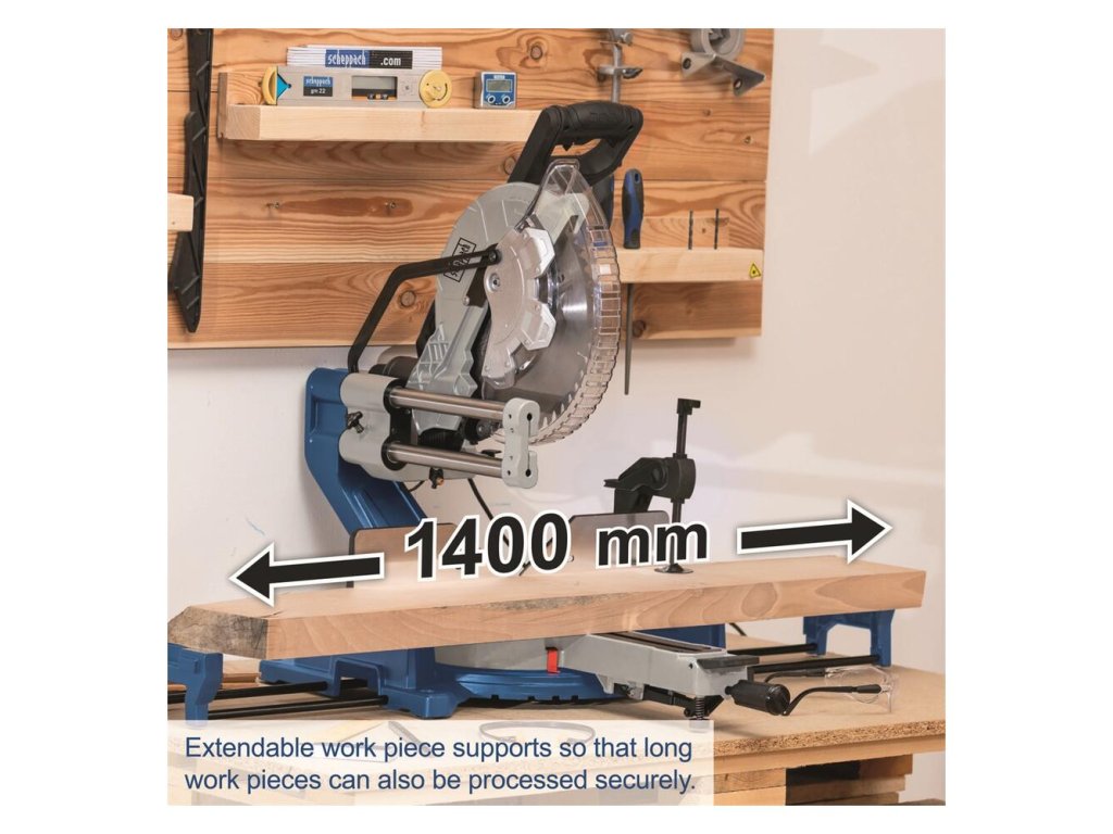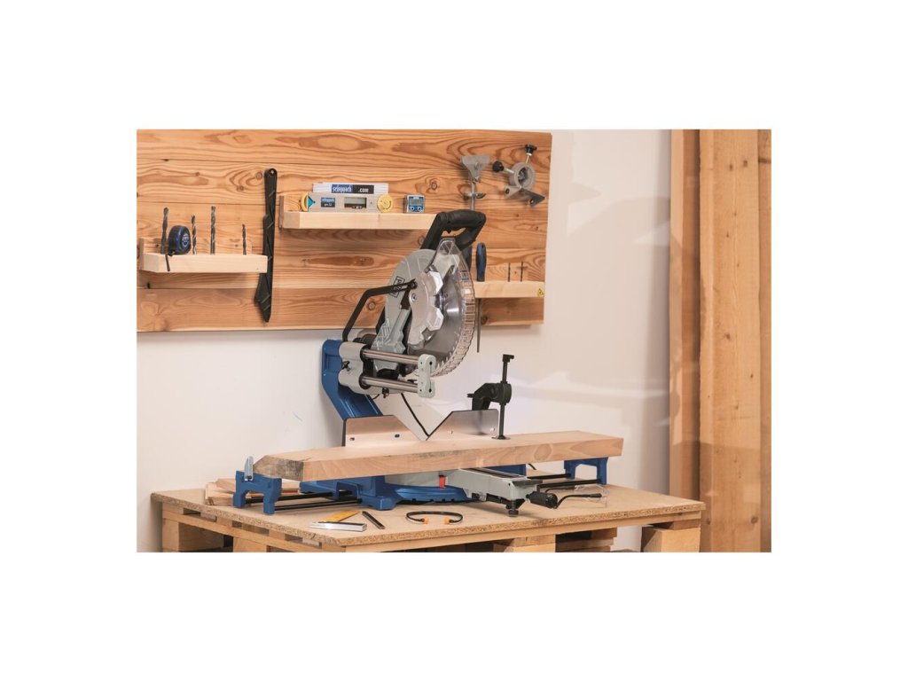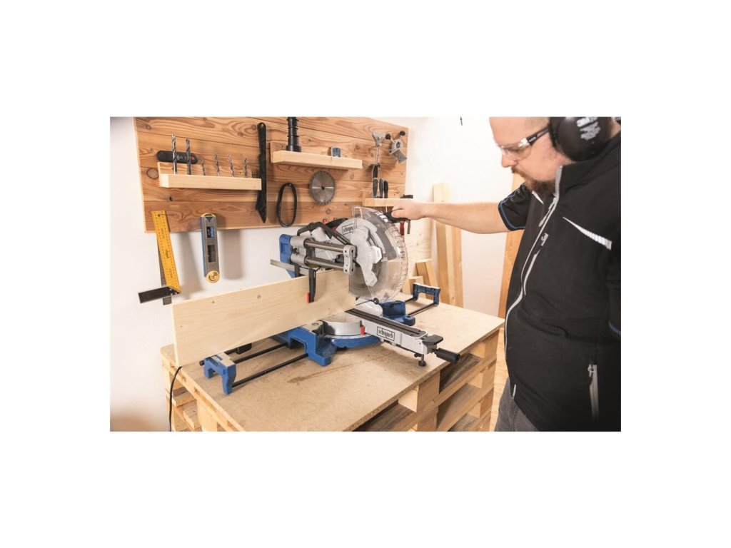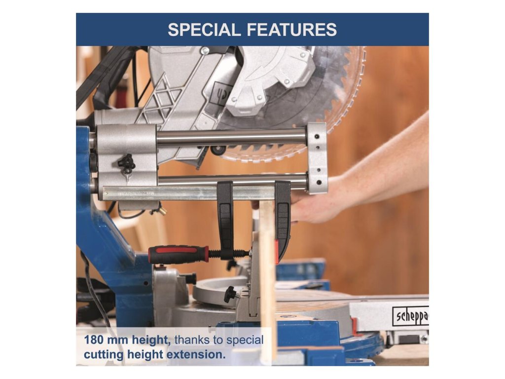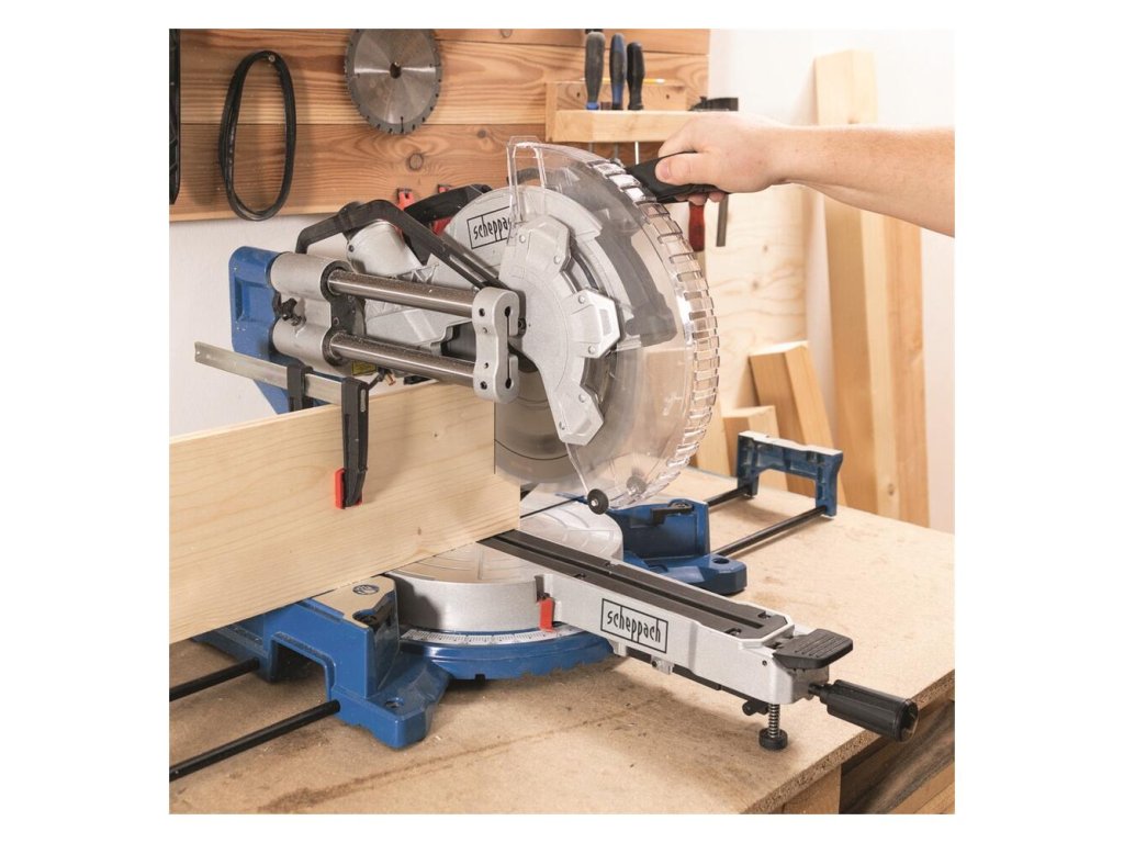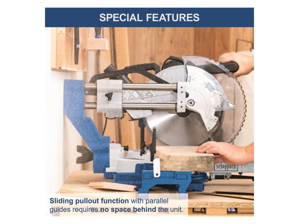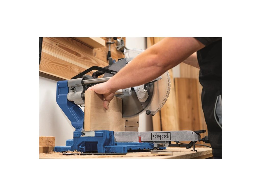 Scheppach HM 305 SL je veľká a výkonná pokosová píla postavená na novej základni s pevnými vodiacimi lištami.To znamená, že aj pri použití funkcie krytu nepotrebuje píla za sebou žiadny priestor, ale môže byť zaparkovaná priamo pri stene.