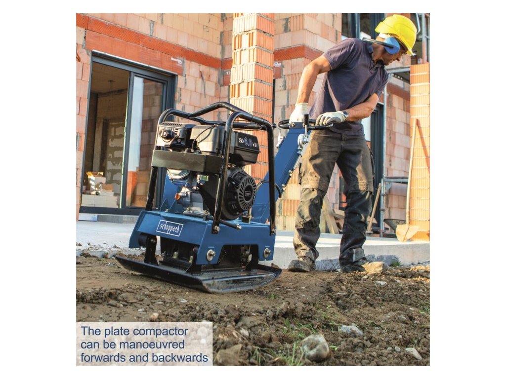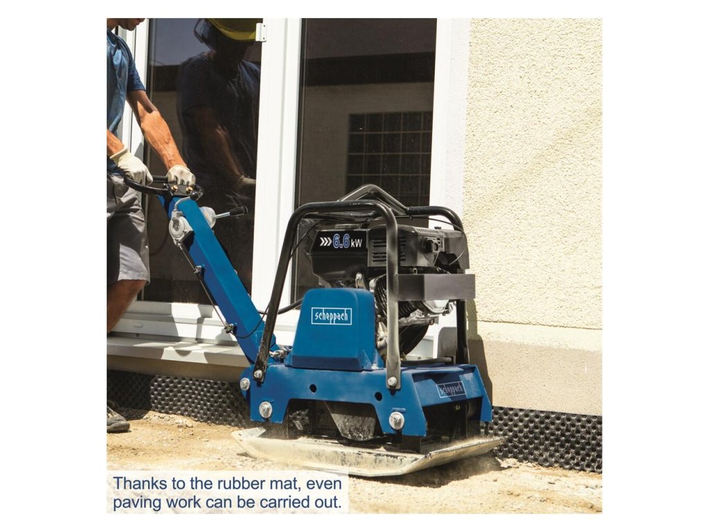 Obojsmerná vibračná doska Scheppach HP 3000 S je vďaka svojim rozmerom a parametrom všestranným a ideálnym strojom na stredne ťažké až ťažké stavebné práce, terénne úpravy, úpravu krajiny atď.Je vhodný na zhutňovanie zemín, živičných vrstiev, sypaného kameňa alebo dlažby.