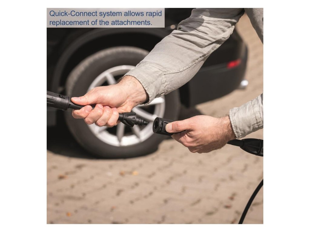 S hmotnosťou iba 5 kg sa s umývačkou ľahko manipuluje a výkonný 1400 W motor dokáže vyvinúť maximálny tlak až 110 barov.