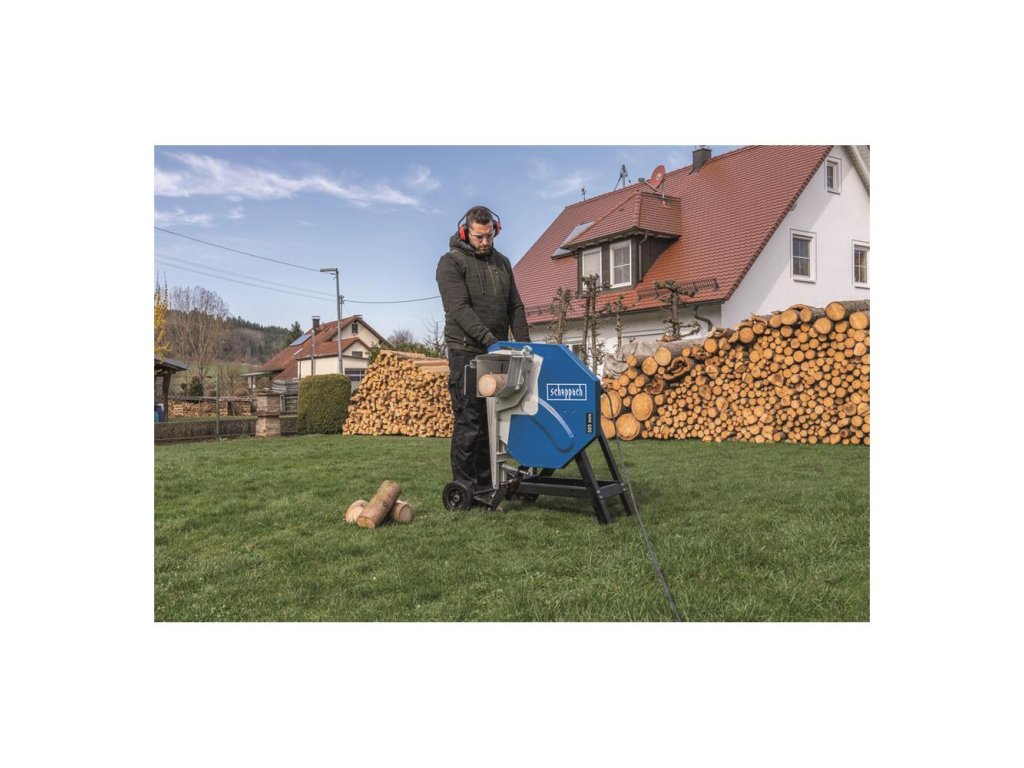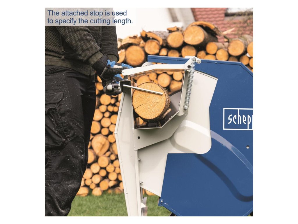 Do podávača vložíte poleno, polguľu alebo dosku, ktorú uchopíte širokou rukoväťou a ľahkým tlakom na pílový kotúč drevo rozrežete.