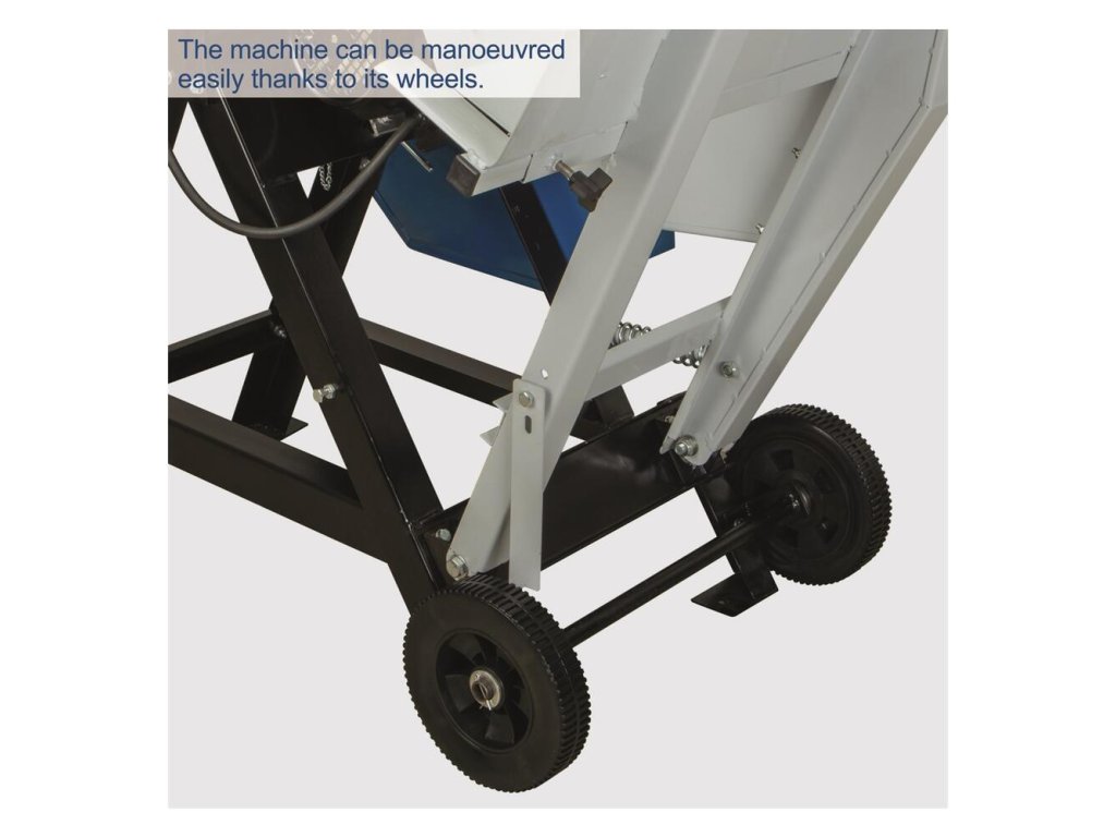 Píla má pevné transportné kolieska, je kompaktná a nezaberá veľa miesta, ale jej konštrukcia je veľmi robustná, odolná voči špičkám a čiastočne vychádza z konštrukcie profesionálnych píl Scheppach.