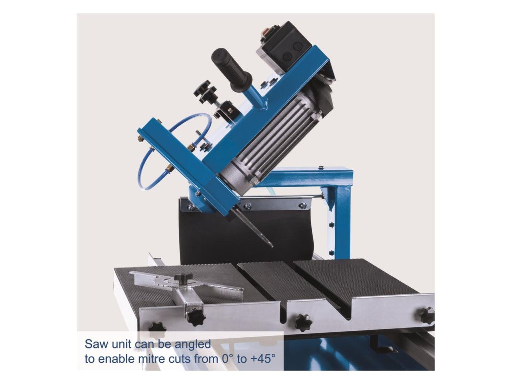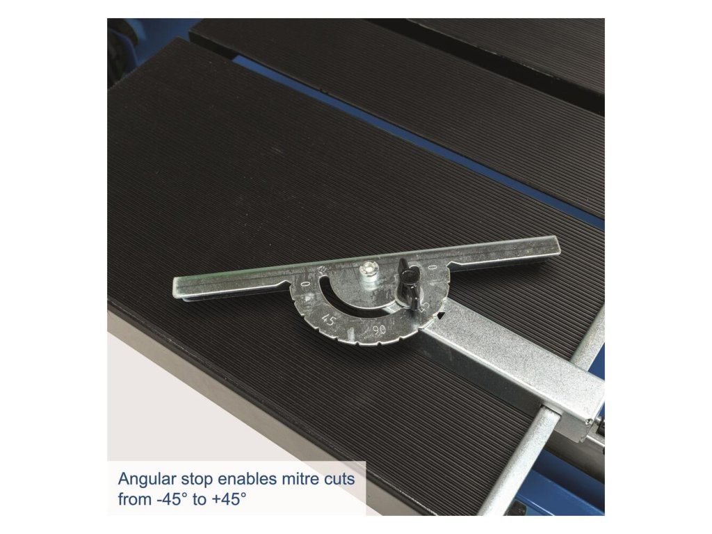 Stôl je vybavený protišmykovým pogumovaným povrchom a presným uhlovým a pozdĺžnym dorazom so stupnicou.