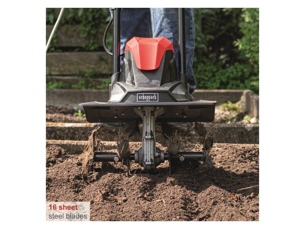 Elektrický kultivátor Scheppach MTE 380 je ideálnym nástrojom na prípravu pôdy pred výsadbou, kyprenie pôdy, plytčenie pôdy po rytí, zapracovanie hnojiva, kompostu alebo rašeliny do pôdy.Vďaka kompaktným rozmerom je vhodný na menšie záhony alebo na prípravu pôdy v skleníkoch.