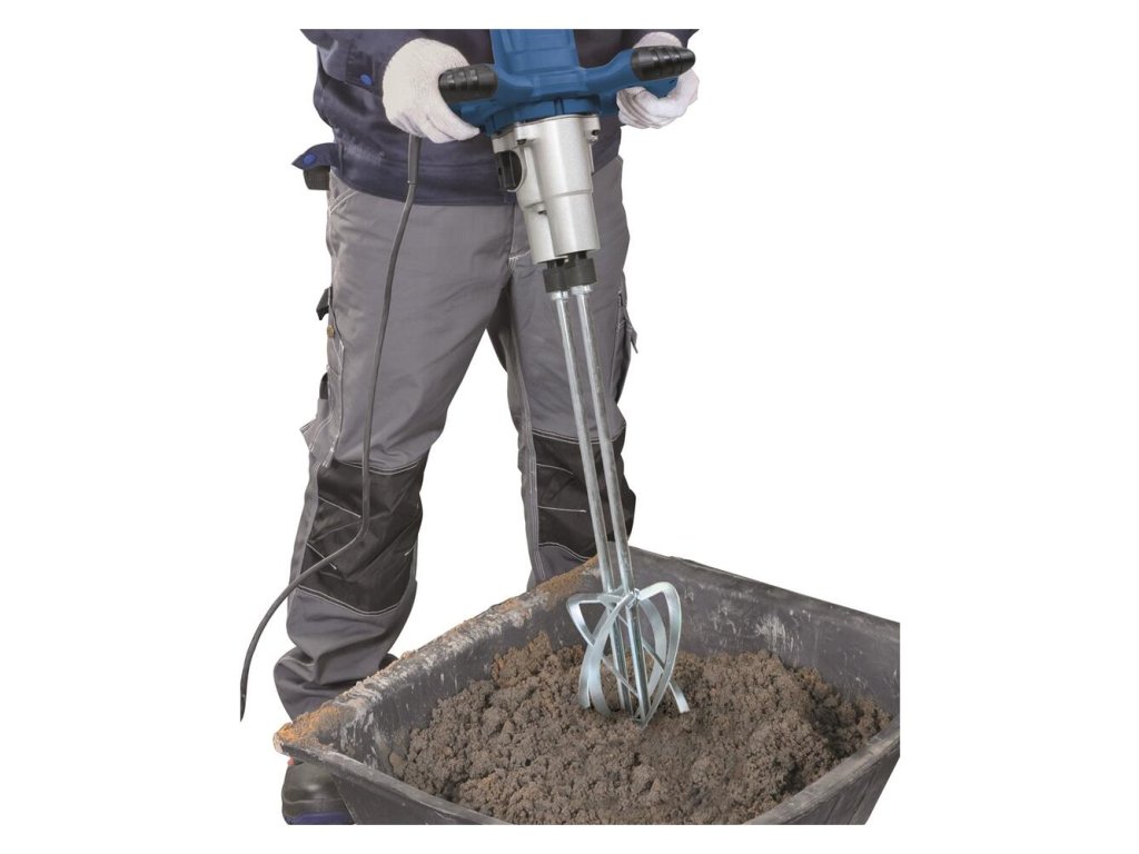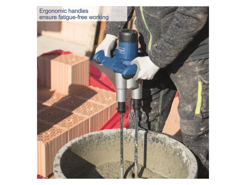 Vďaka svojej konštrukcii je miešačka Scheppach PM 1800 D s dvoma metlami určená na miešanie bežných stavebných materiálov, ako aj na miešanie ťažkých vysoko viskóznych zmesí s hmotnosťou do 90 kg.Zvládne teda materiály, ako sú malta, betón, omietka, farby, omietky, malty, lepidlá, farby atď.