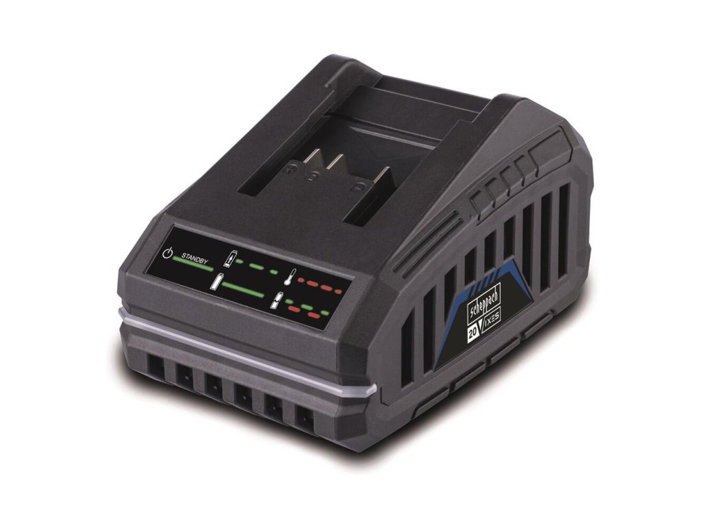 Scheppach SBC2.4A je kompaktná rýchlonabíjačka, ktorá dokáže nabíjať všetky lítium-iónové batérie Scheppach radu IXES s napätím 20 V.