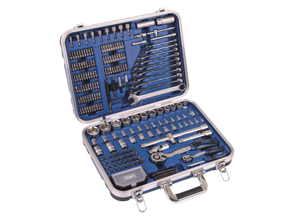 Scheppach TB 235 je veľmi komplexná a obľúbená súprava 233 základných nástrojov na skrutkovanie (kľúče, račne, nástrčné hlavice, bity), ktorá je ukrytá v robustnom hliníkovom kufríku.Každé náradie má presne určené miesto a bude tak vždy rýchlo a ľahko po ruke.