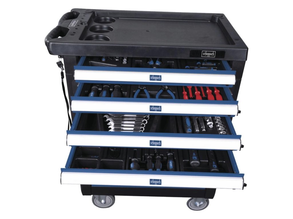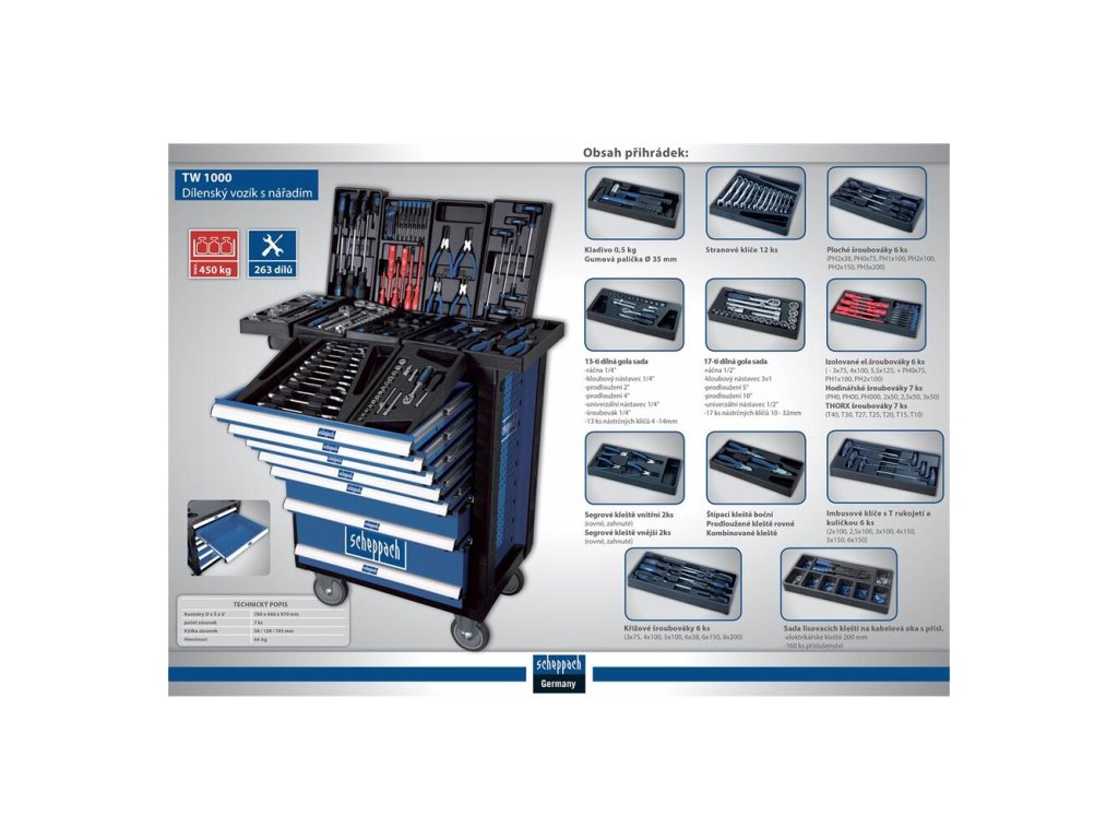 Scheppach TW 1000 je profesionálny celokovový dielenský vozík vhodný pre domáce a remeselné dielne, garáže, servisy atď.