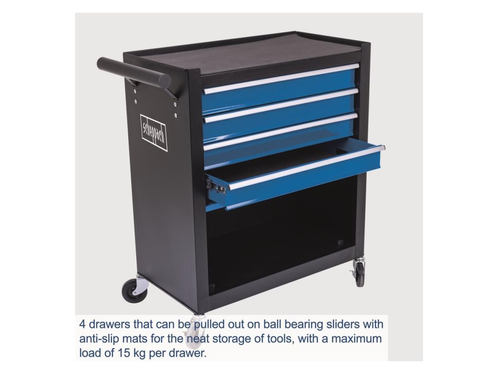 Scheppach TW 1300 je kompaktný celokovový dielenský vozík vhodný pre menšie domáce dielne alebo garáže.