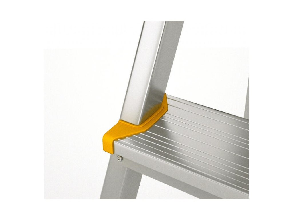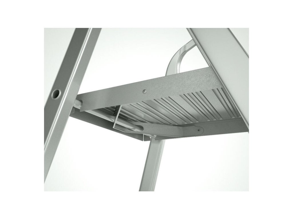 Jednostranné hliníkové schodíky EUROSTYL, počet nášľapov vr. plošinky 1 x 3, rozmery plošinky 264 x 262 mm, max. výška plošinky 0,55 m a šírka 407 mm.