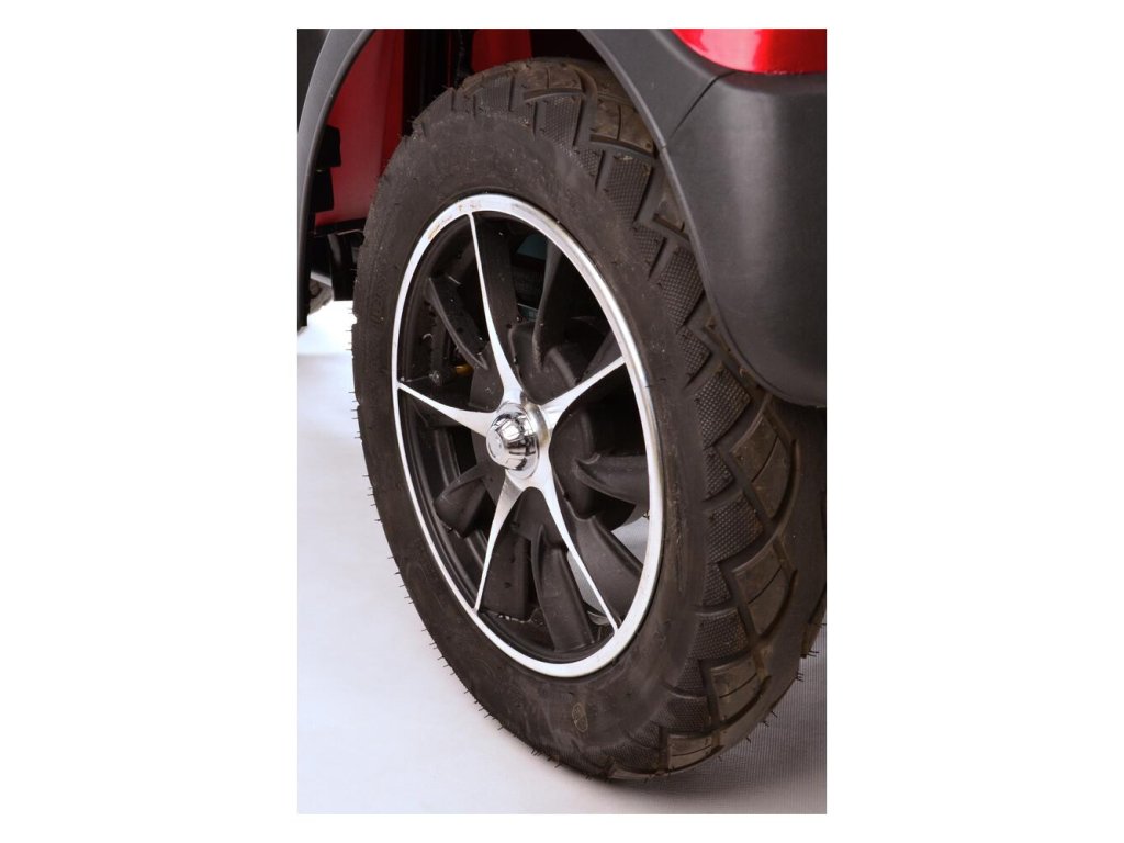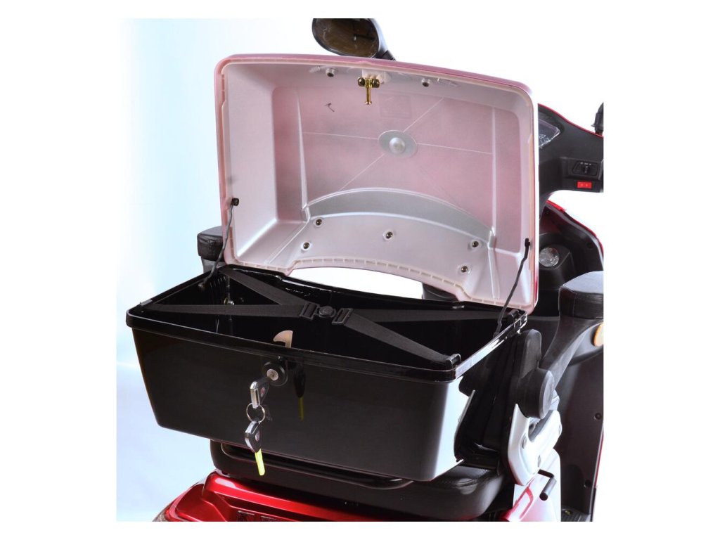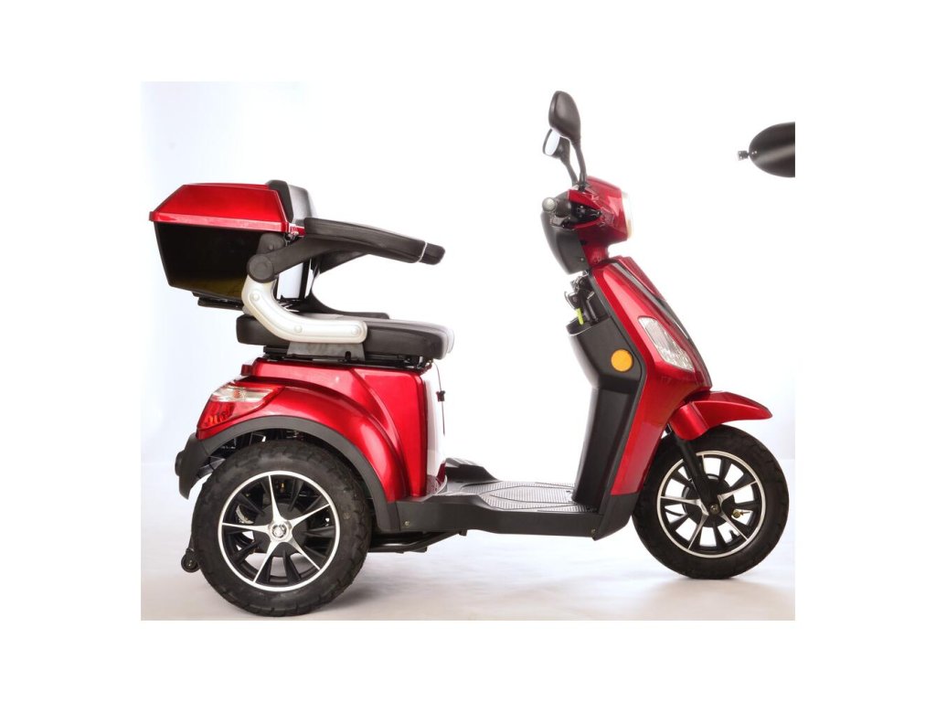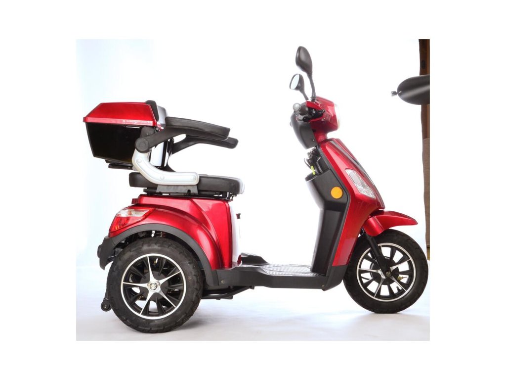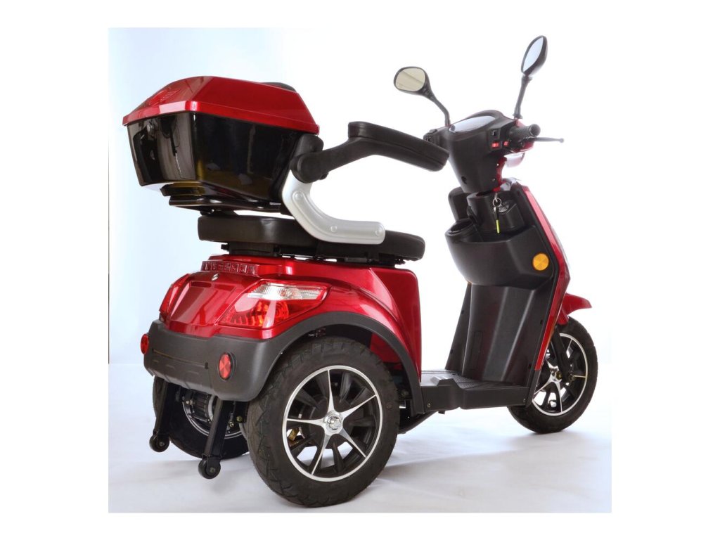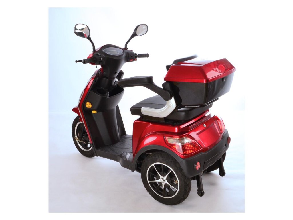 Trojkolesový elektrický skúter Selvo 31000EB je dopravný prostriedok 21.storočia. V minulosti používané hlučné a nákladné mopedy teraz striedajú elektro skútre. Pokiaľ ide o značku Selvo, sú navyše aj stabilné, ľahko ovládateľné a tak vhodné okrem iného aj pre menej obratné osoby ako sú seniori, osoby so zdravotným postihnutím a pod. Ideálne sa pre nich hodia k návratu do aktívneho života ako dochádzanie do práce, na nákup, na prechádzku so psom atď. Na strojoch si však plno zábavy užijú aj čisto voľnočasoví nadšenci. Trojkolky Selvo sa ponúkajú v rôznych variantoch motora, batérií a bŕzd pre rôzne zdatných používateľov a rôznu životnosť batérií. Vždy však s výnimočným silovým prevodom, ktorý šikovne a plynule reaguje na otočenie rukovätí s ovládačom výkonu a to aj vo veľmi kopcovitom teréne alebo pri rozjazde z križovatky. Pre menej zdatné osoby je možné jednoducho znížiť maximálnu rýchlosť a stroj sa tak stáva bezpečným aj pre tých, ktorí sa inak obávajú jazdy na akomkoľvek vozidle. Nevadí, že neviete jazdiť na bicykli, nemusíte držať rovnováhu. Stabilitu zabezpečuje široký rozchod zadných kolies, kvalitné odpruženie a pneumatiky. Aj tak ale bez problému prejdete bežnými dverami o šírke 80cm. Vďaka dizajnu pripomínajúcemu motocykel si budete pripadať dôstojne a štýlovo aj v prevádzke. Vozidlo je certifikované ako bicykel a v prevádzke sa tak pohybujete ako cyklista so všetkými povinnosťami a náležitosťami, ktoré pre cyklistov platia. Výbava ako je uzamykateľný úložný box a odkladací priestor na drobnosti iste tiež prídu vhod každému užívateľovi, či už na nákup alebo výlet.