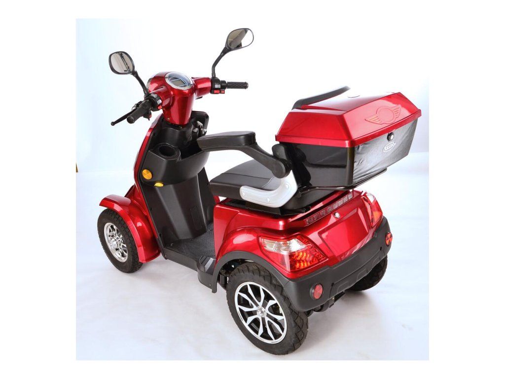 Štvorkolesový elektrický skúter Selvo 41000 je dopravný prostriedok 21 storočia. V minulosti používané hlučné a nákladné mopedy s chýbajúcim výkonom teraz striedajú elektro skútre. Pokiaľ ide o značku Selvo, sú navyše aj stabilné, ľahko ovládateľné a tak vhodné okrem iného aj pre menej obratné osoby ako sú seniori, osoby so zdravotným postihnutím a pod. Ideálne sa pre nich hodia k návratu do aktívneho života ako dochádzanie do práce, na nákup, na prechádzku so psom atď. Na strojoch si však plno zábavy užijú aj čisto voľnočasoví nadšenci. Štvorkolky Selvo sa ponúkajú v rôznych variantoch batérie a brzdy pre rôzne zdatných používateľov a rôznu životnosť batérií. Vždy však s výnimočným silovým prevodom, ktorý šikovne a plynule reaguje na otočenie rukoväti s ovládačom výkonu a to aj vo veľmi kopcovitom teréne alebo pri rozjazde z križovatky. Pre menej zdatné osoby je možné jednoducho znížiť maximálnu rýchlosť a stroj sa tak stáva bezpečným aj pre tých, ktorí sa obávajú jazdy na akomkoľvek vozidle. Nevadí, že neviete jazdiť na bicykli, nemusíte držať rovnováhu. Stabilitu zabezpečuje široký rozchod kolies, nízke ťažisko, kvalitné odpruženie a pneumatiky. Aj tak ale bez problému prejdete bežnými dverami o šírke 80cm. Vďaka dizajnu pripomínajúcemu motocykel si budete pripadať dôstojne a štýlovo aj v prevádzke. Vozidlo je certifikované ako bicykel a v prevádzke sa tak pohybujete ako cyklista so všetkými povinnosťami a náležitosťami, ktoré pre cyklistov platia. Výbava ako je uzamykateľný úložný box a odkladací priestor na drobnosti iste tiež prídu vhod každému užívateľovi, či už na nákup alebo výlet.