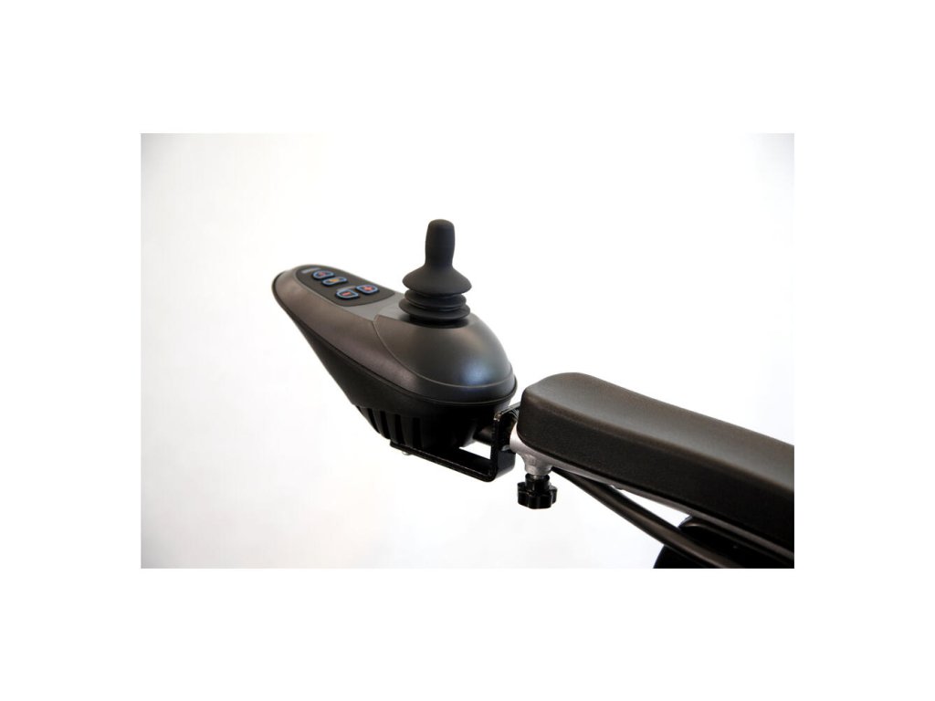 - Pomocou joystiku na ovládacom paneli umiestnenom na lakťovej opierke volíte rýchlosť a smer jazdy.