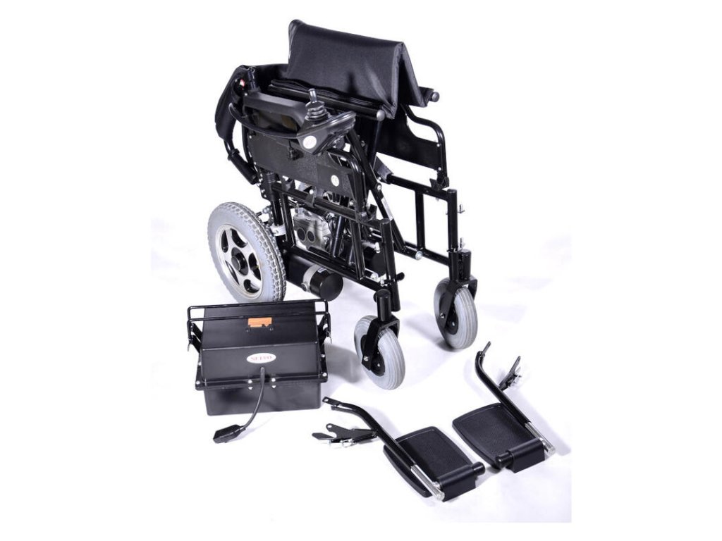 - Po vybratí batérie možno zložiť opierku chrbta vozík zložiť zdvihnutím sedáka