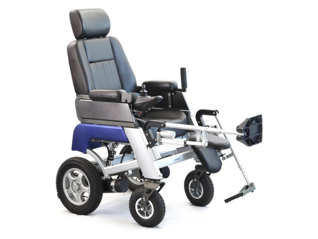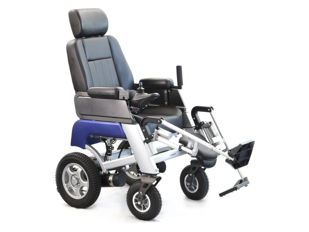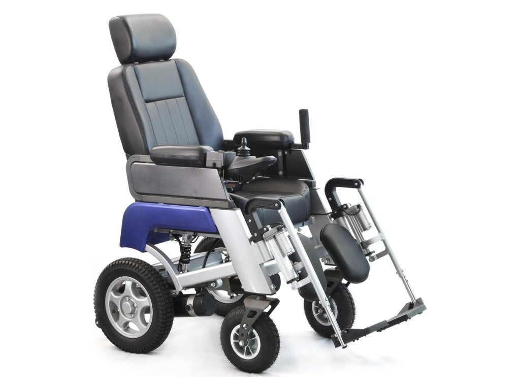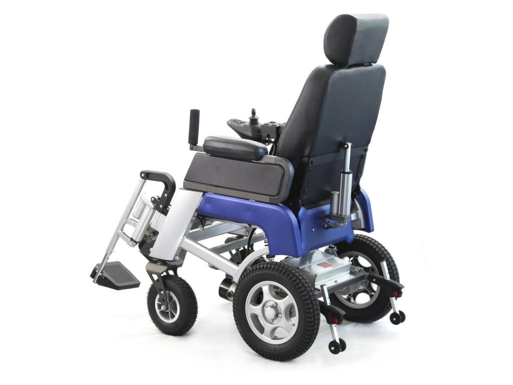 - Funkcie: Elektrické naklápanie chrbtového operadla a opierok nôh, odpruženie zadných kolies, nastaviteľná výška koliesok proti preklopeniu, bezpečnostný pás.