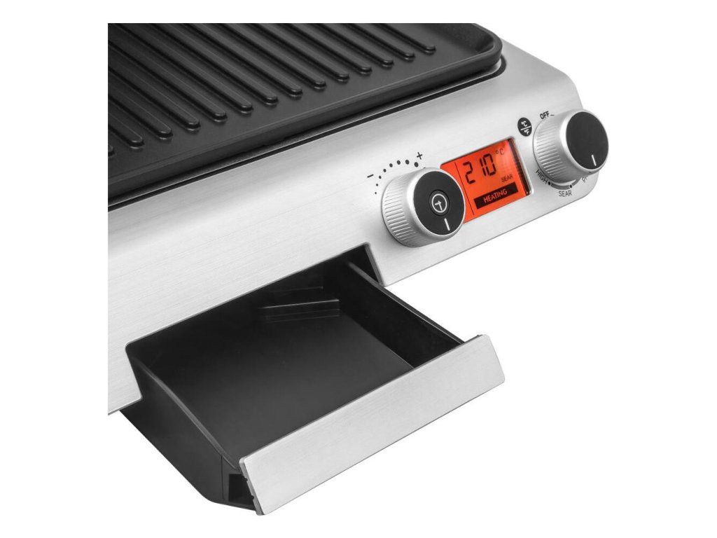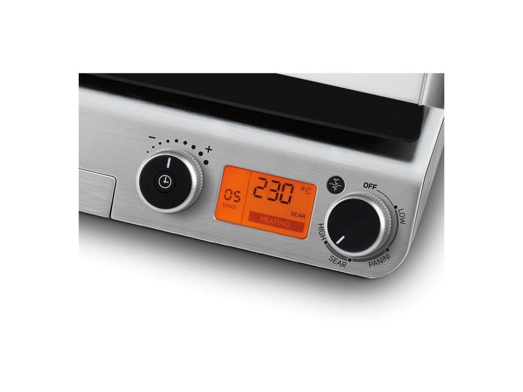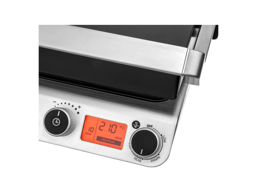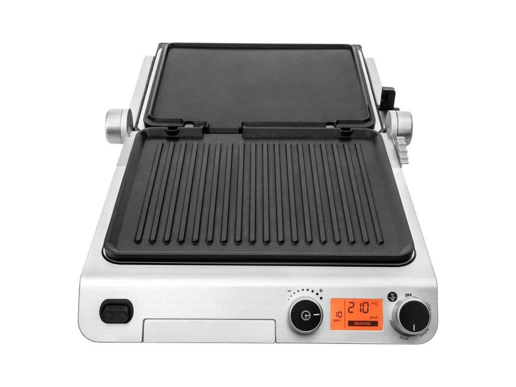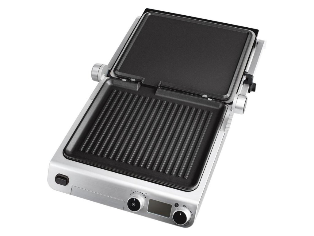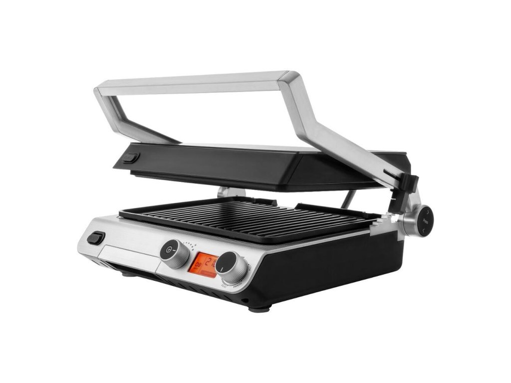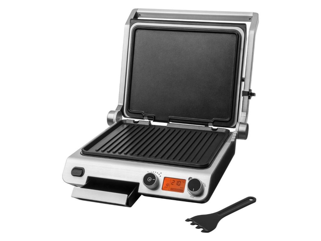 Kontaktný gril v luxusnom sklenenom dizajne disponuje digitálnym ovládaním a nepriľnavými grilovacími doskami. Gril ponúka možnosť grilovania bez nutnosti pridávania oleja a disponuje časovým spínačom a tepelne izolovanou rukoväťou pre pohodlnú manipuláciu.