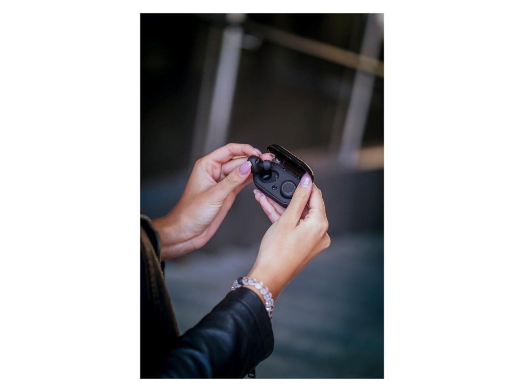 Typ a kapacita batérie: 3,7 V 50 mAh Li-ion (každé slúchadlo) a 3,7 V 400 mAh Li-Ion (nabíjacia