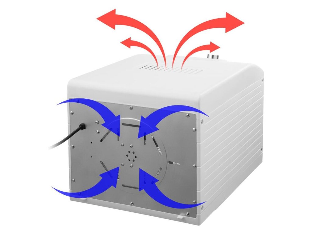 Integrovaný ventilátor s priemerom 17 cm zaručuje rovnomerné sušenie na všetkých poschodiach