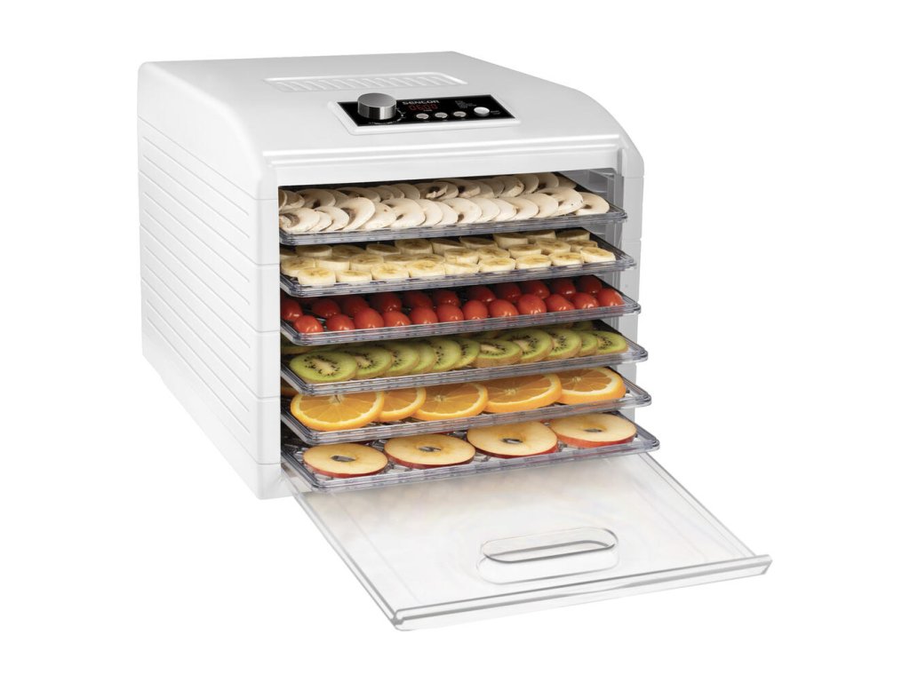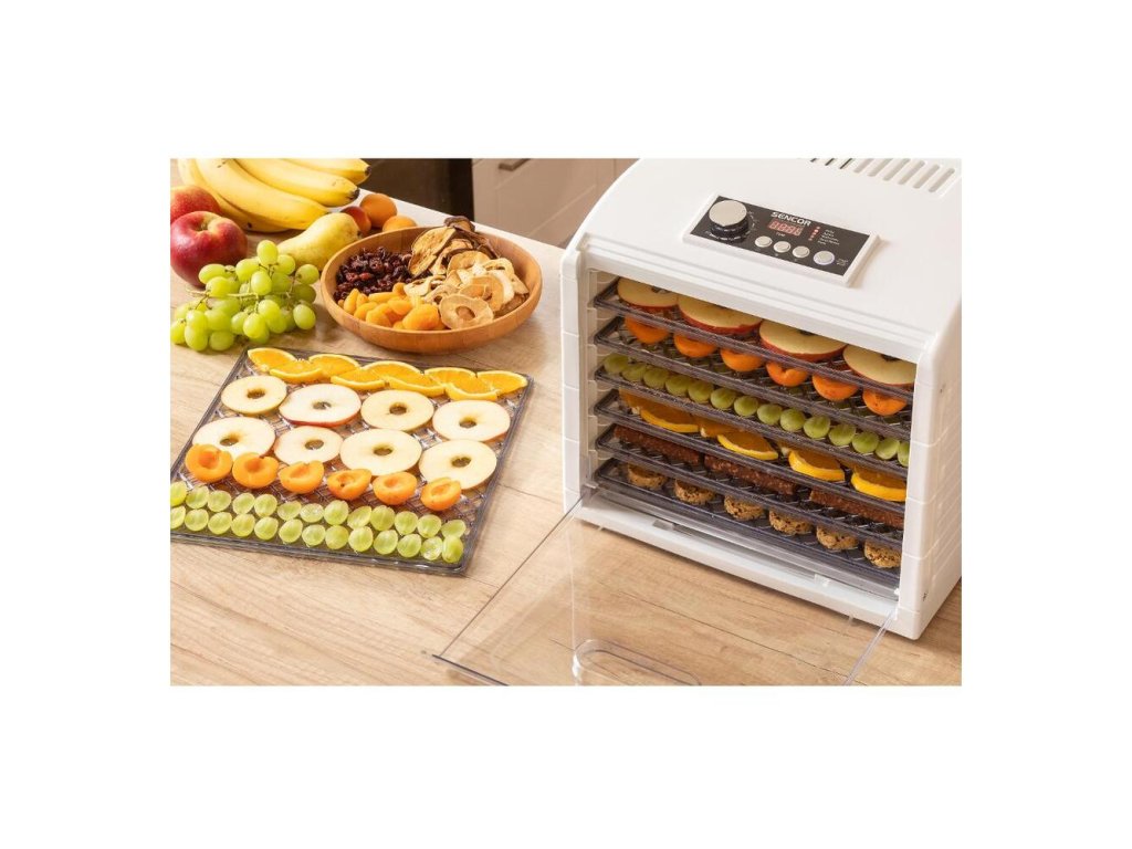Priehľadné dvierka a podnosy umožňujú okamžitú vizuálnu kontrolu nad stavom sušenia