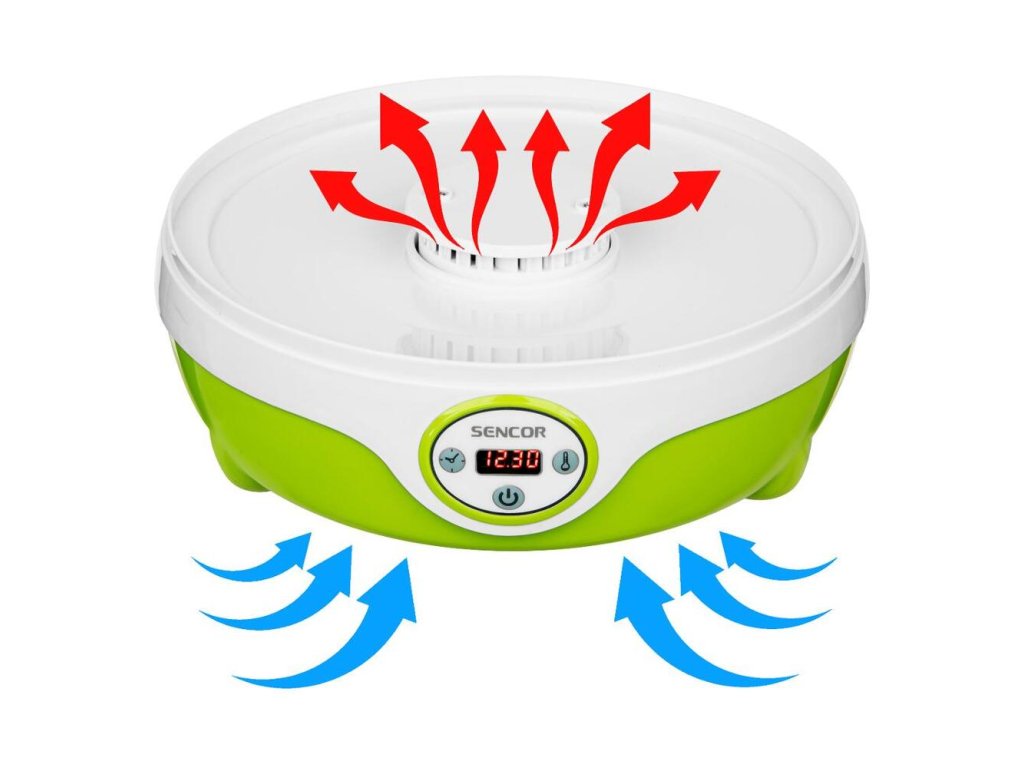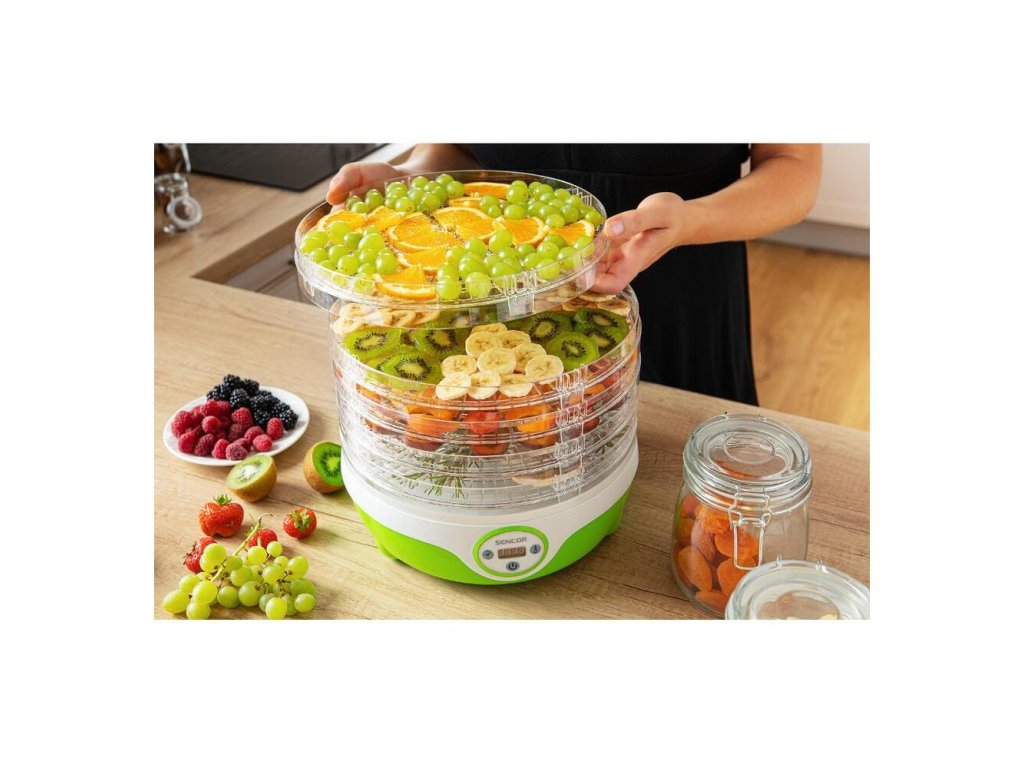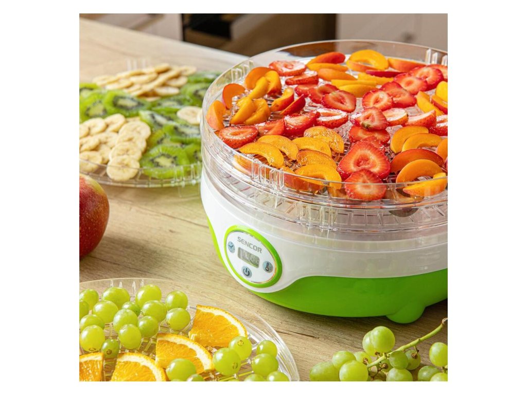 - Priehľadné veko a podnosy umožňujú okamžitú vizuálnu kontrolu nad stavom sušenia