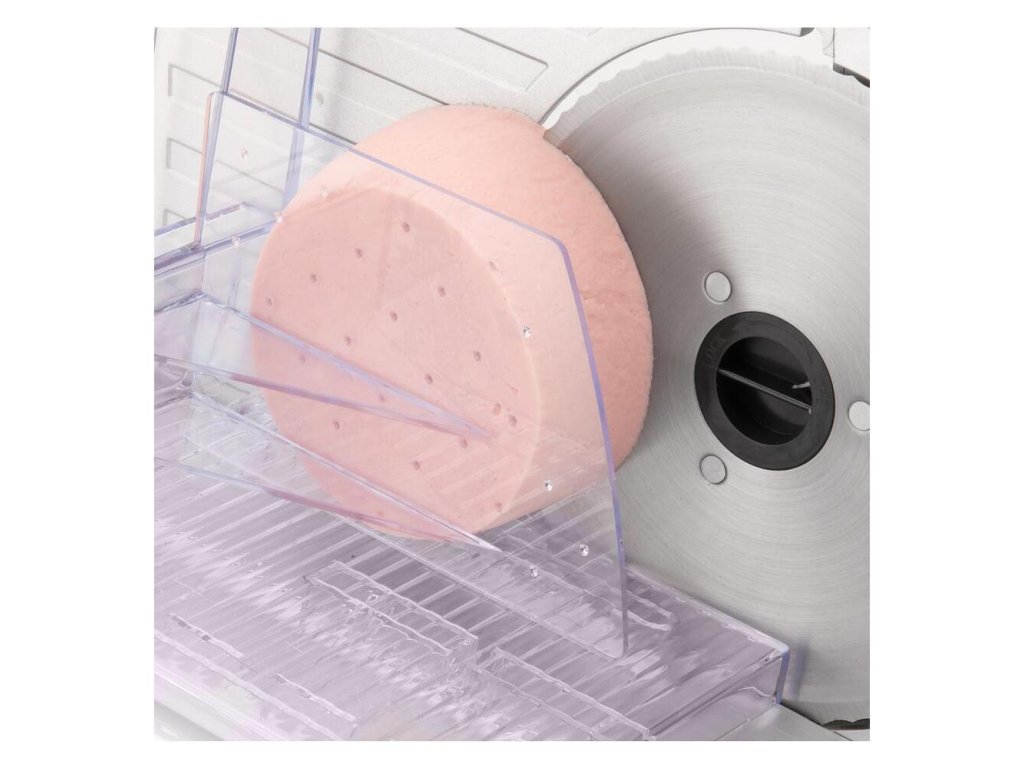 - Možnosť úplného vysunutia prítlačného podávača na krájanie rozmernejších potravín