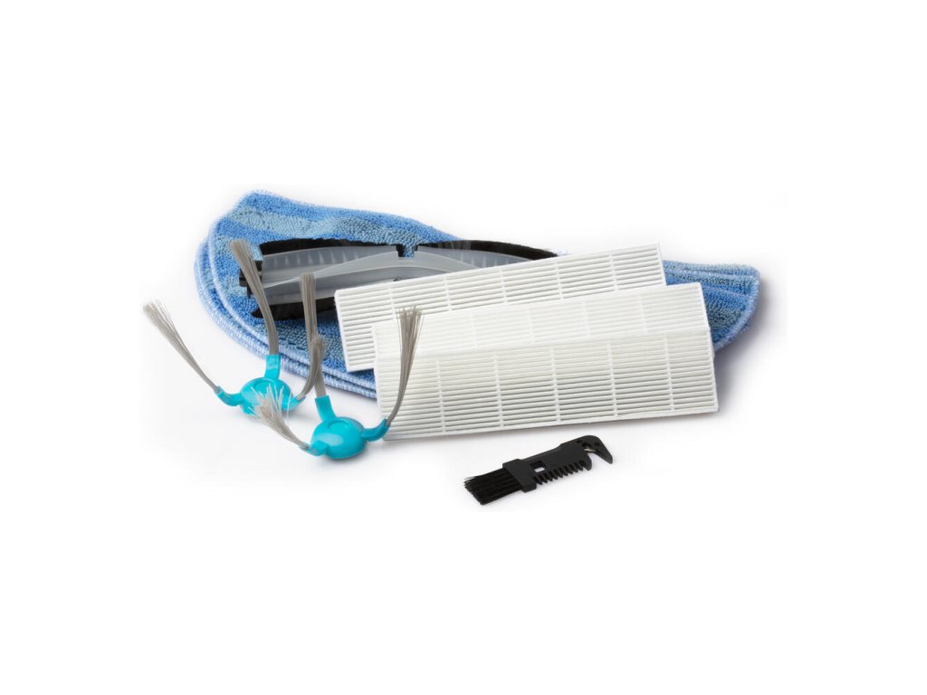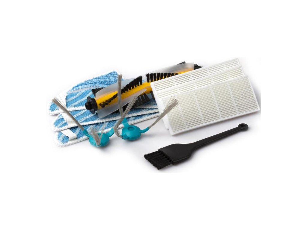 1 pár bočných kief, 1 stredová kefa, 3 handričky na vytieranie, 3 súpravy hepa filtrov, 1 čistiace zariadenie