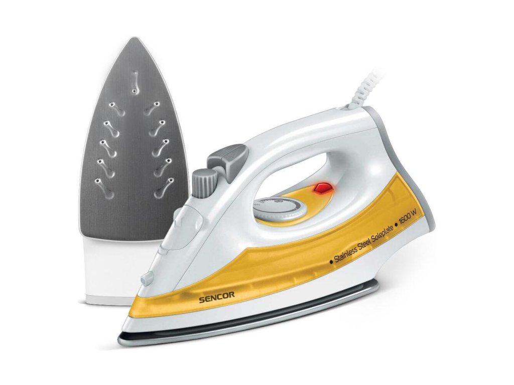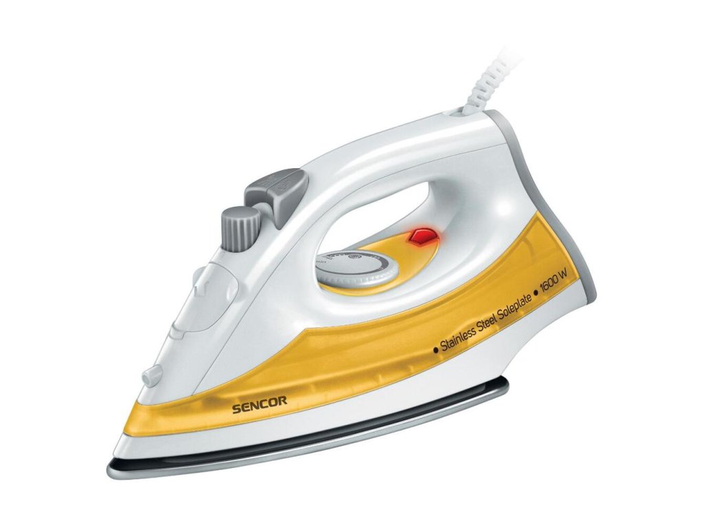Naparovacia žehlička značky SENCOR v bielo-oranžovom prevedení.