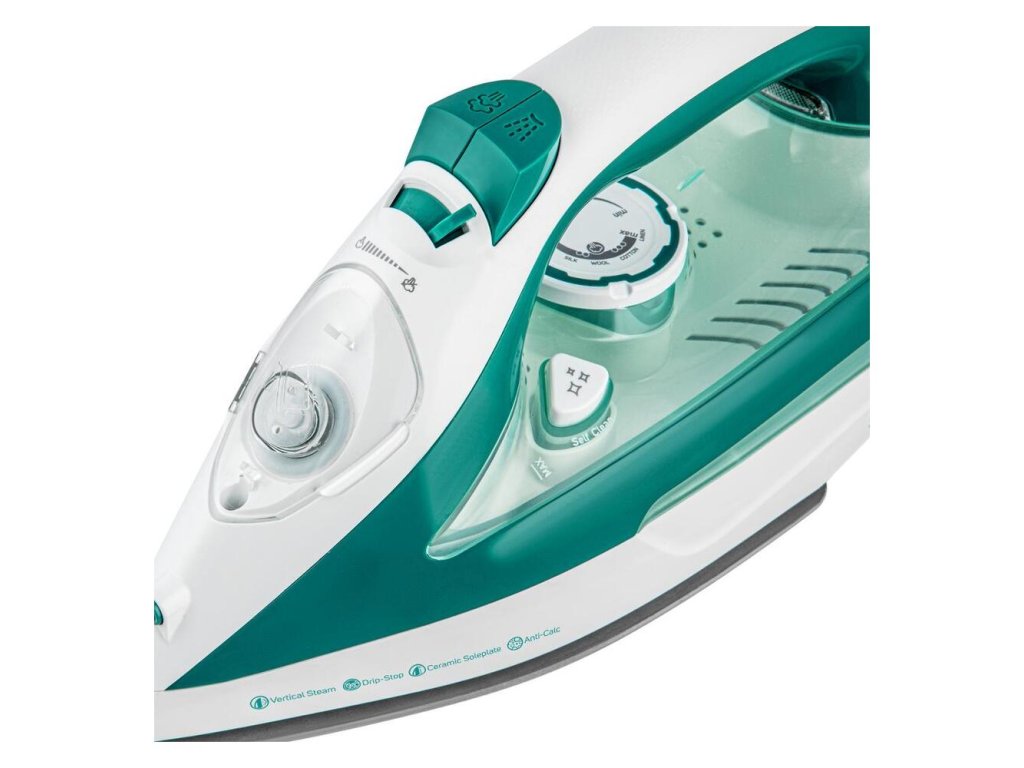 - Žehlička je vybavená keramickou žehliacou plochou, plynulou reguláciou teploty, systémom Anti-Calc a funkciou Drip-Stop.