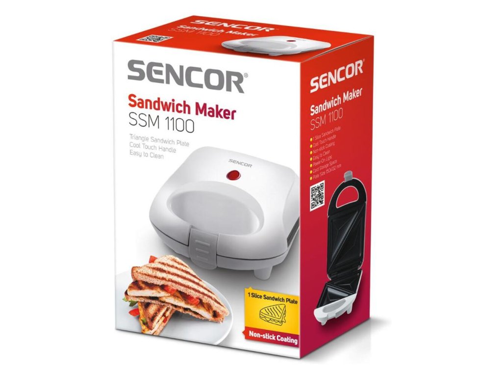 Sendvičovač značky Sencor v bielej farbe disponuje príkonom 700W. Je vhodný na prípravu 2 štvorcových sendvičov. K dispozícií je svetelná signalizácia prevádzky a tepelne izolovaná rukoväť. Samozrejmosťou je bezpečnostná tepelná poistka, protišmykové nožičky a automatická regulácia teploty. Potešia vás ľahko čistiteľné plochy na pečenie.