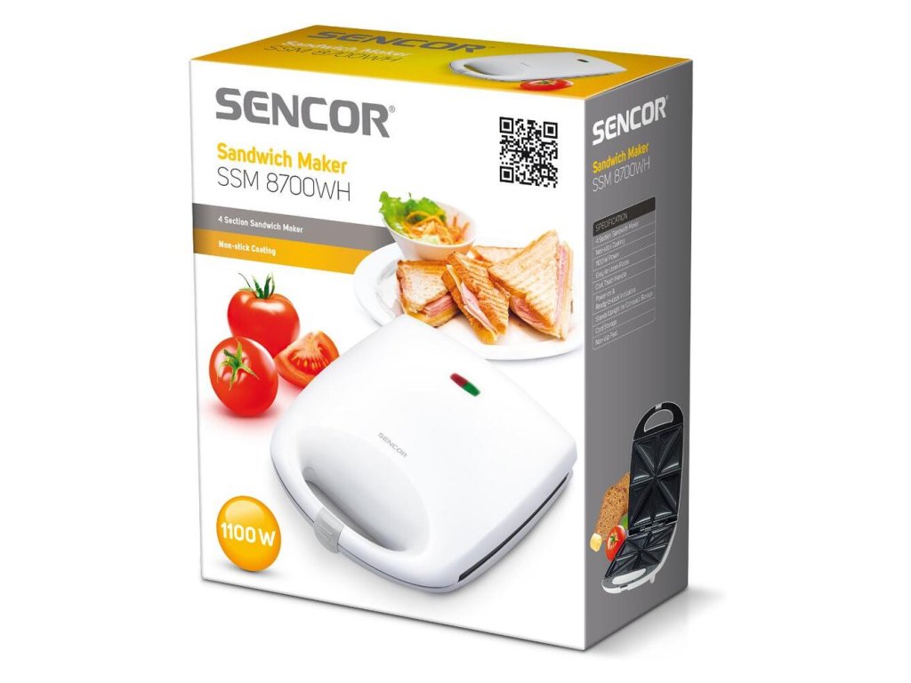Sendvičovač je vhodný na prípravu 8 trojuholníkových sendvičov. V jeho výbave je automatická regulácia teploty, jednoducho čistiteľné opekacie plochy a nepriľnavá povrchová úprava opekacích plôch. Samozrejmosťou je tepelne izolovaná rukoväť a plášť.