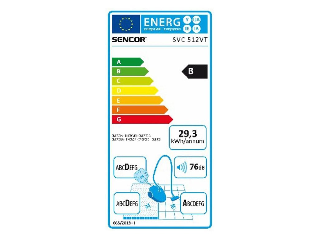 - Trieda účinnosti vysávania pre tvrdé podlahy: A