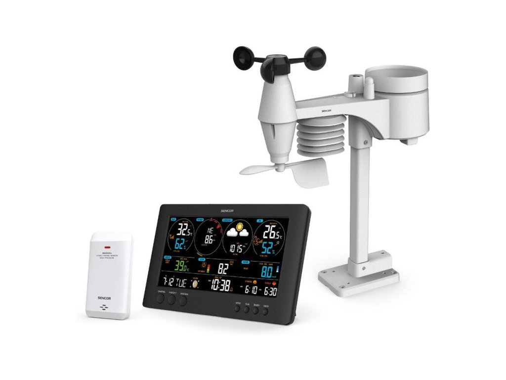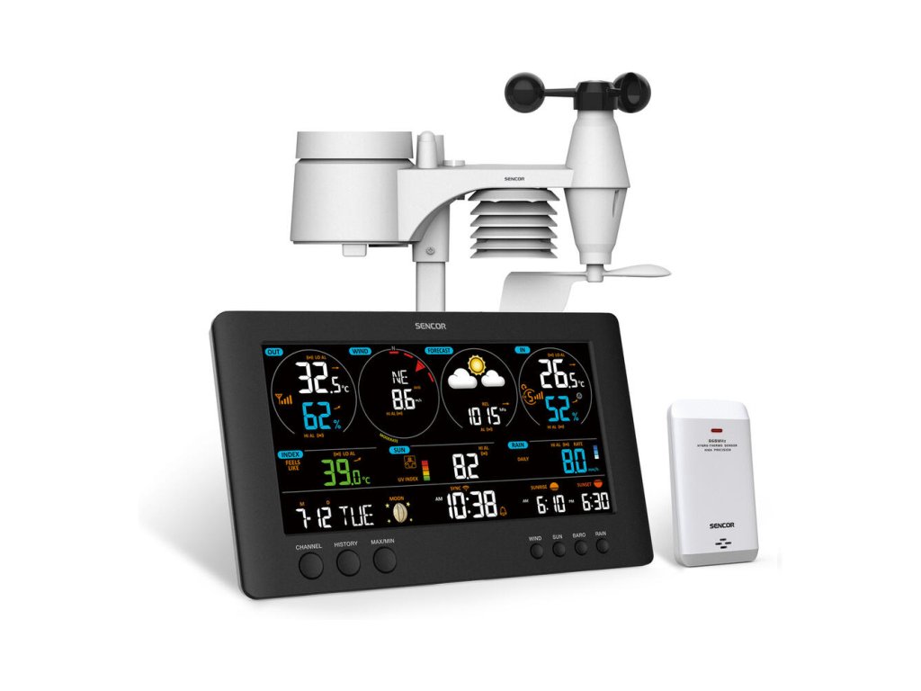 - Bezdrôtový snímač 7 v 1: Rýchlosť vetra, smer vetra, dažďové zrážky, teplota, vlhkosť, intenzita svetla a UV (súčasťou príslušenstva)