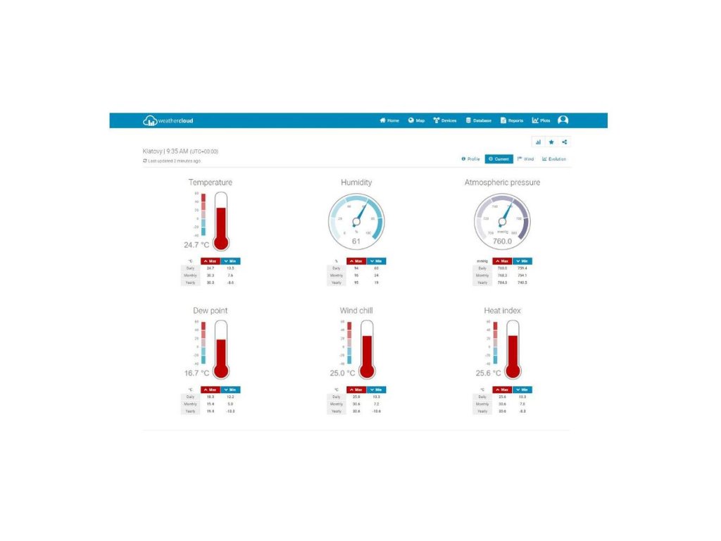 - Podpora globálnych verejných meteorologických platforiem „Weather Underground" a „Weathercloud".