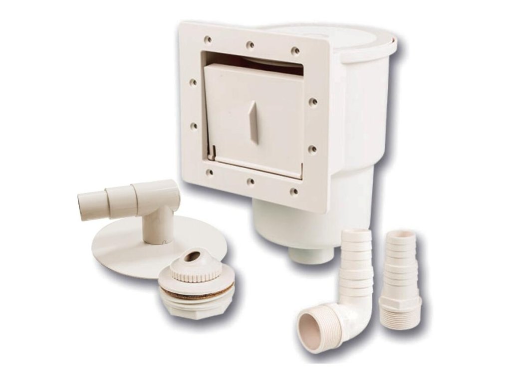 Vstavaný skimmer CF v elegantnom bielom prevedení je ideálnou voľbou na udržanie dokonale čistej hladiny bazéna.