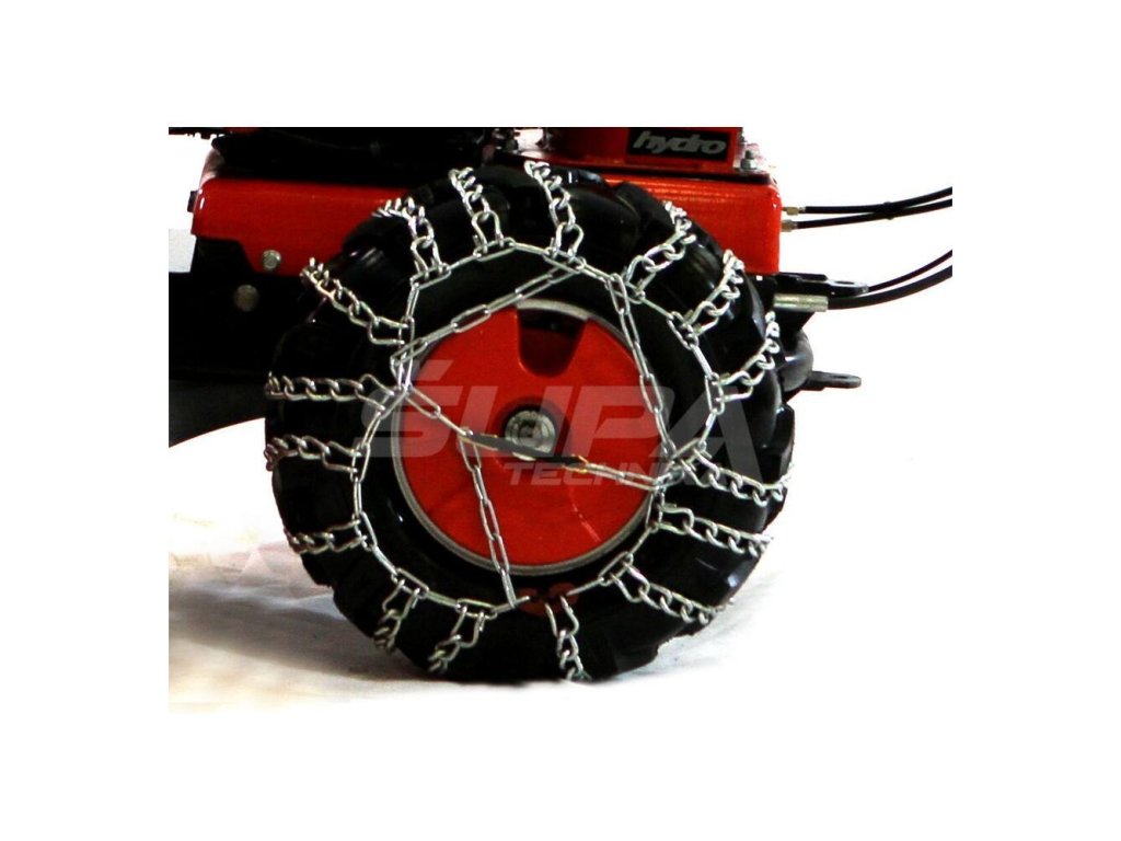 Tieto snehové reťaze sú nevyhnutné zimné príslušenstvo pre multifunkčný nosič Vari Raptor Hydro s radlicou RSR-1000 (OEM: 4476). Sú určené pre pneumatiky s rozmerom 4,00-8,0. Výrazné zlepšenie adhézie na snehu a ľade pomáha k efektívnejšiemu využitiu zhrňovacej radlice a zabezpečuje lepšiu ovládateľnosť stroja v náročných zimných podmienkach.Pôvodný dlhý popis: