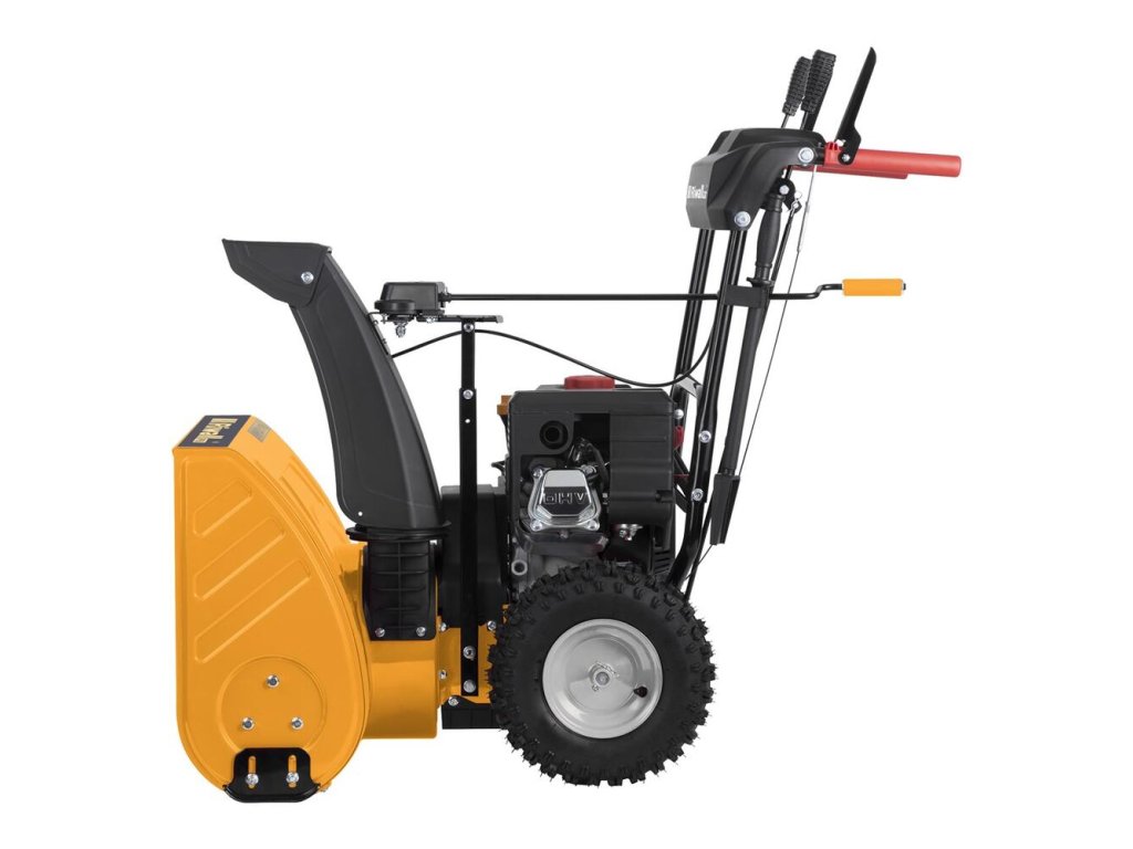 výkonný motor, vysoký zásobník, ozubený šnek, výkonný vyhadzovací ventilátor a široký plastový vyhadzovací komín pracujú dobre aj v zľadovatenom alebo mokrom snehu