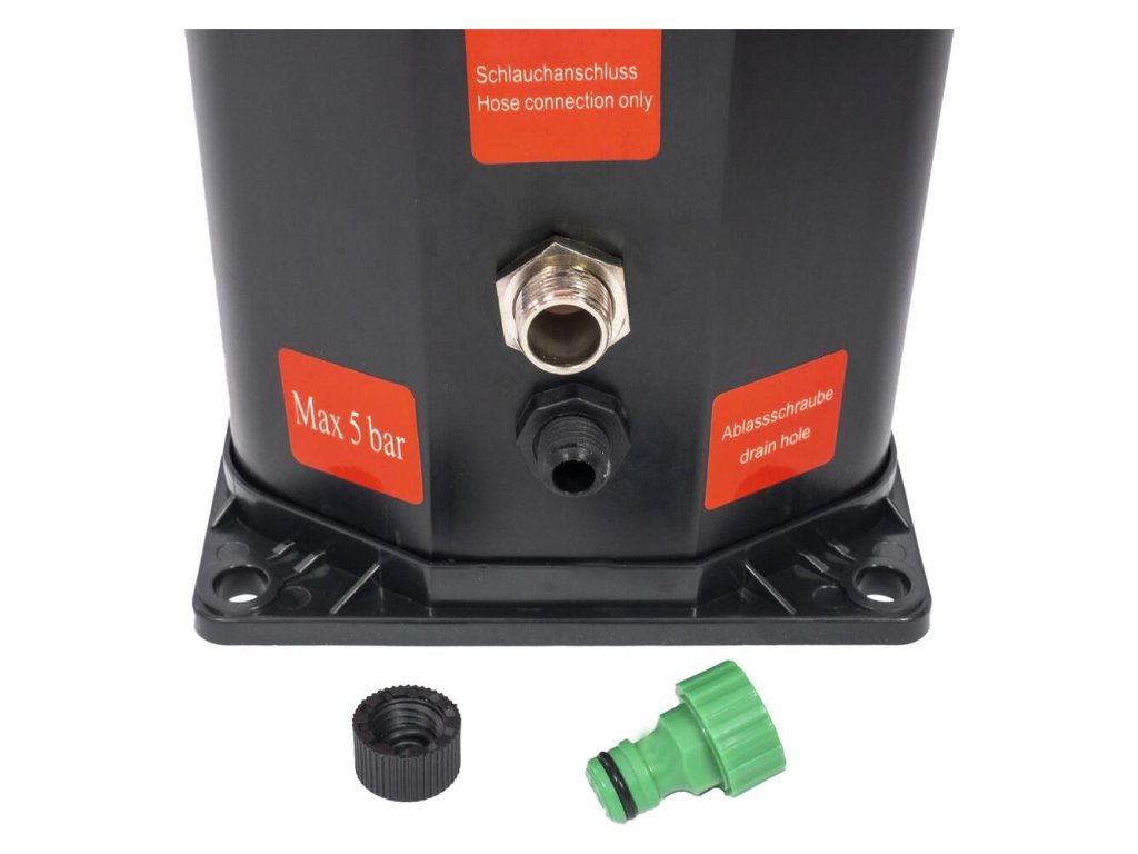 Inštalácia sprchy je veľmi jednoduchá a zvládnete ju sami. Solárna sprcha sa pripevňuje k základni pomocou 4 skrutiek, ktoré sú súčasťou balenia. Potom stačí pripojiť záhradnú hadicu a je hotovo. Ak nechcete sprchu pripevňovať k zemi, môžete si kúpiť podlahový stojan a sprchu pripevniť k nemu. Ak je podstavec dostatočne veľký (napr. podstavec pre solárnu sprchu Planet Pool), zabezpečí, že sprcha bude samonosná a nebude potrebné ďalšie kotvenie. Podstavec je praktickým doplnkom solárnej sprchy - je protišmykový, bezpečný a má odtok vody. Sprchu pripevnenú k podstavcu môžete ľahko premiestniť na iné miesto v záhrade.