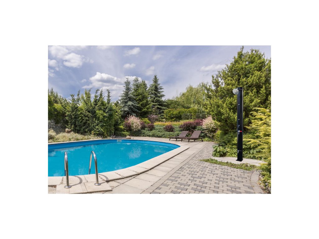 Solárna sprcha neslúži len na osvieženie, ale odporúčame sa osprchovať pred každým kúpaním v bazéne. Do vody sa potom dostáva menej nečistôt, čo znižuje spotrebu bazénovej chémie a potrebu starostlivosti o bazén.