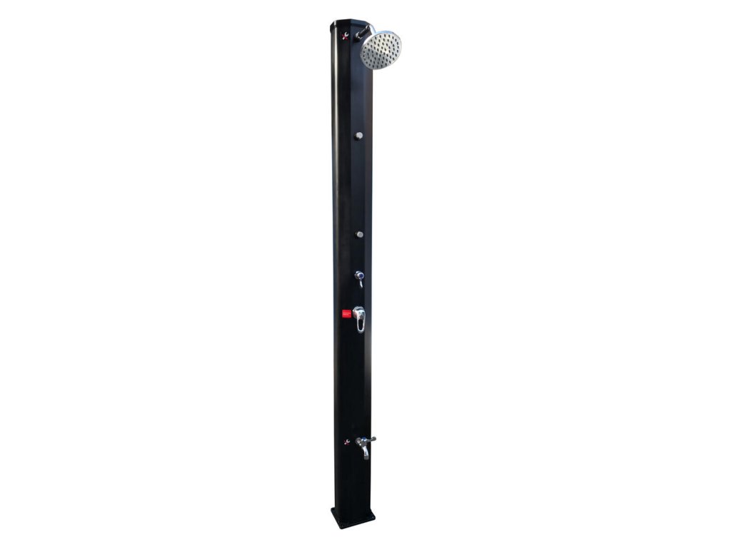 Solárna sprcha je ideálnym zdrojom teplej vody bez použitia elektrickej energie. Vodu v solárnom zásobníku jednoducho ohreje slnko až na 60 °C. K tomu prispieva aj čierny dizajn sprchy. Sprcha je vybavená zmiešavacou pákovou batériou, takže si môžete nastaviť teplotu vody podľa svojich potrieb.