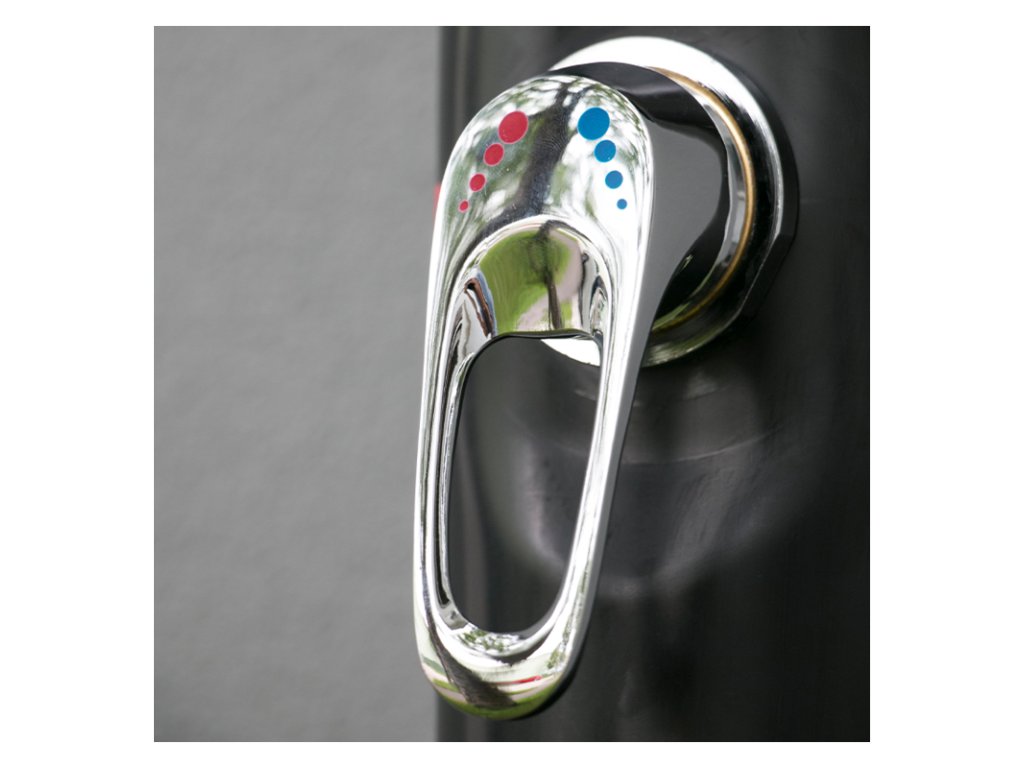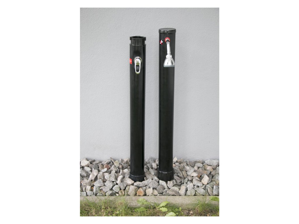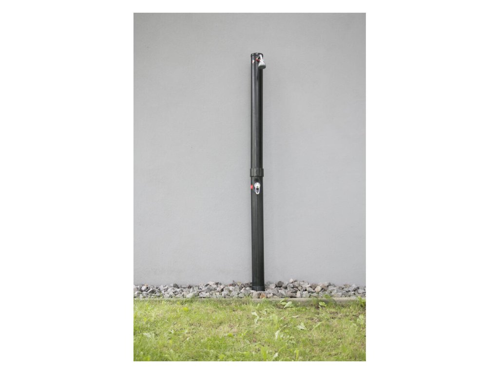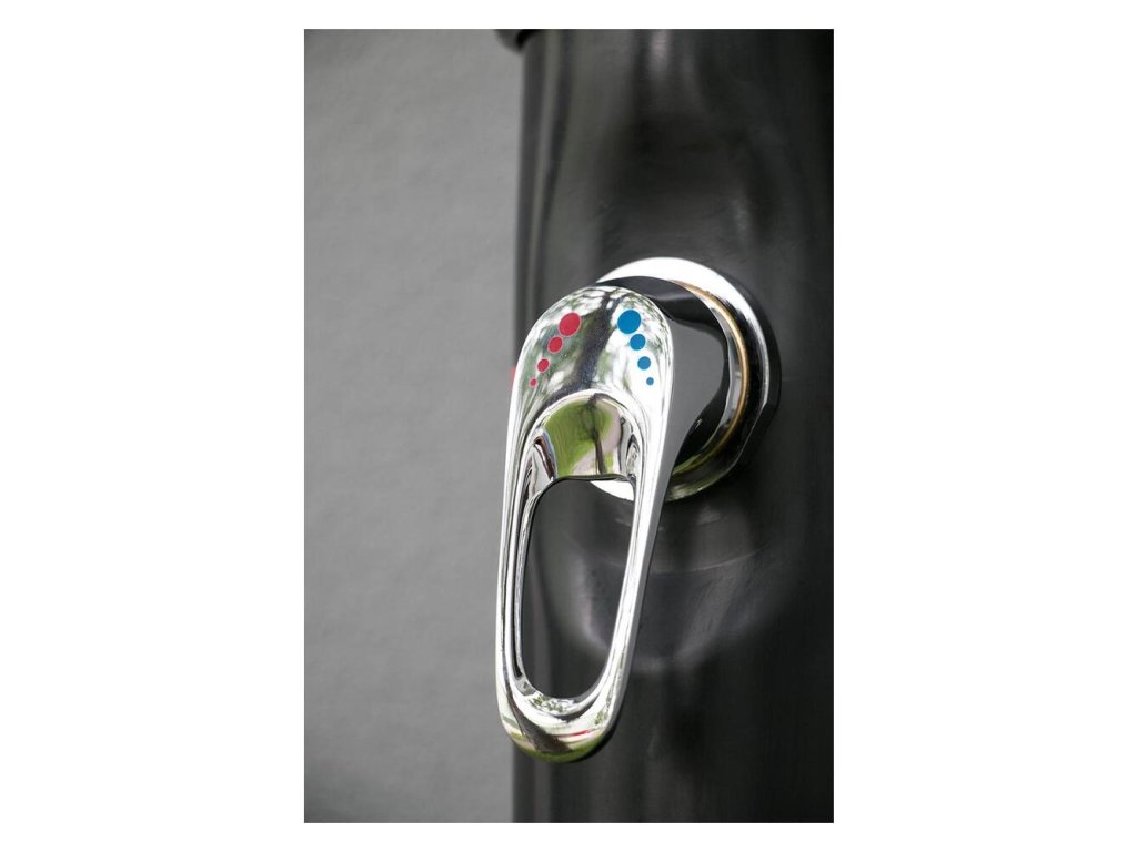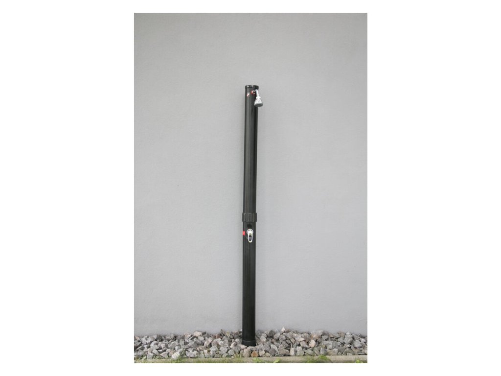Solárna sprcha je ideálnym zdrojom teplej vody bez použitia elektrickej energie. Vodu v solárnom zásobníku jednoducho ohreje slnko až na 60 °C. K tomu prispieva aj čierny dizajn sprchy. Sprcha je vybavená zmiešavacou pákovou batériou, takže si môžete nastaviť teplotu vody podľa svojich potrieb.