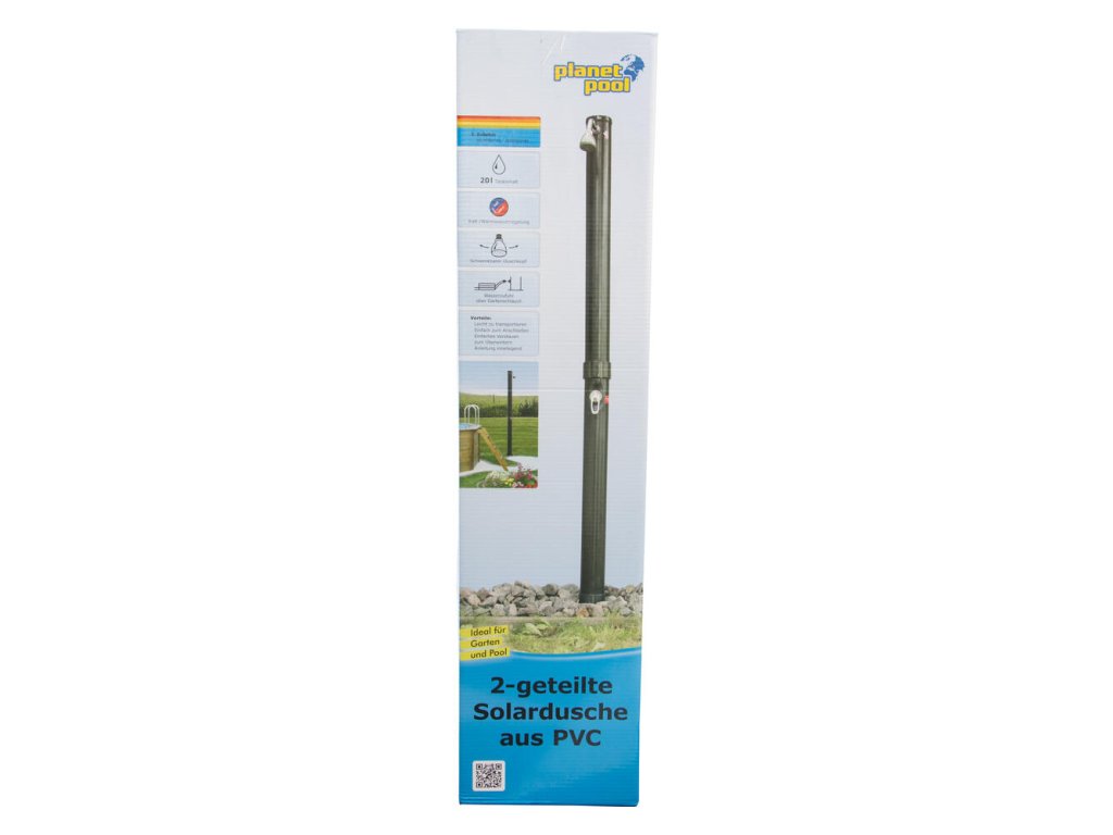 Univerzálna solárna sprcha, ktorá sa hodí do každej záhrady. Sprcha je vyrobená z kvalitného PVC odolného voči UV žiareniu, má 20 l nádrž a výšku 218 cm. Pripojenie k prívodu vody je veľmi jednoduché pomocou rýchlospojky s hadicou (je súčasťou dodávky). Sprcha je dvojdielna, takže sa dá ľahko zložiť a preniesť na iné miesto.