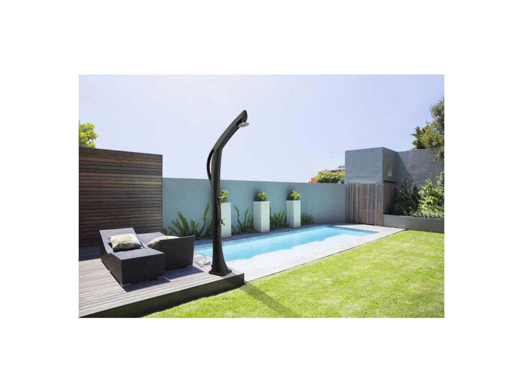 Solárna sprcha je ideálnym zdrojom teplej vody bez použitia elektrickej energie. Vodu v solárnom zásobníku jednoducho ohreje slnko až na 60 °C. K tomu prispieva aj čierny dizajn sprchy. Sprcha je vybavená zmiešavacou pákovou batériou, takže si môžete nastaviť teplotu vody podľa svojich predstáv.