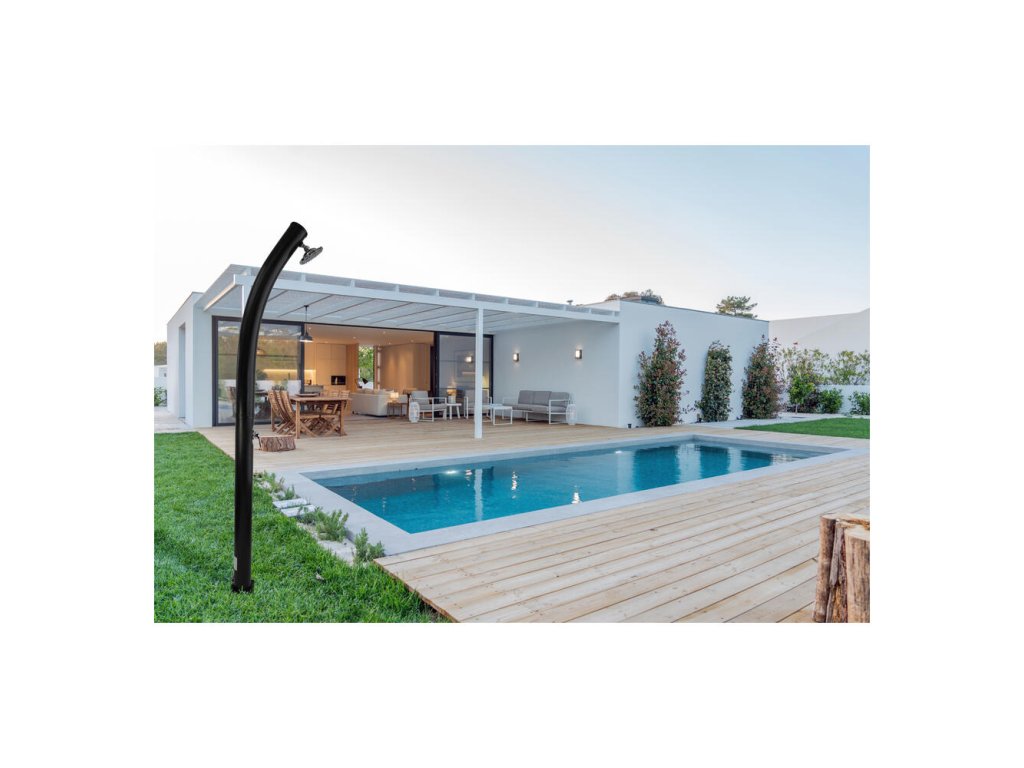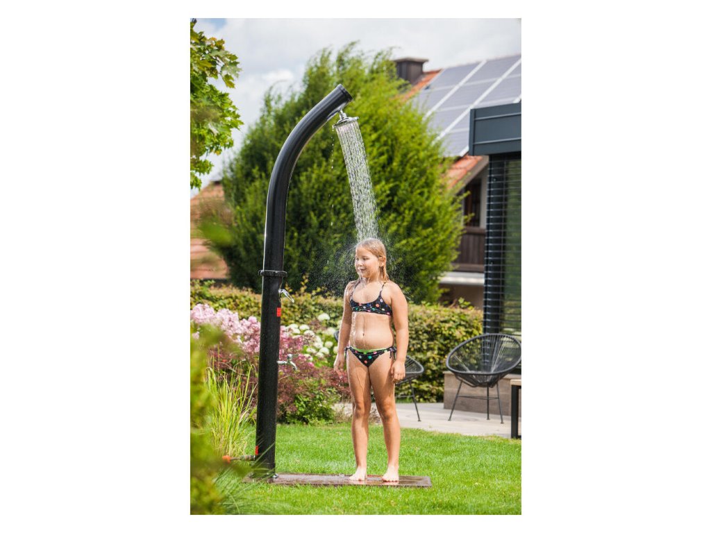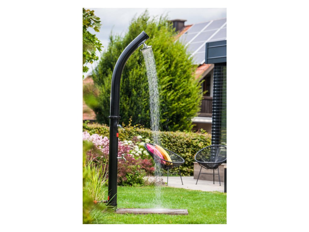 Solárna sprcha je ideálnym zdrojom teplej vody bez použitia elektrickej energie. Vodu v solárnom zásobníku jednoducho ohreje slnko až na 60 °C. K tomu prispieva aj čierny dizajn sprchy. Sprcha je vybavená zmiešavacou pákovou batériou, takže si môžete nastaviť teplotu vody podľa svojich potrieb.
