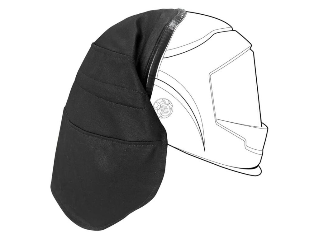 Ochranná kapucňa, ktorá chráni hornú a zadnú časť hlavy pred iskrami a teplom. Overená kompatibilita so značkou SOLUTION, pre pohodlie a bezpečnosť pri zváraní.