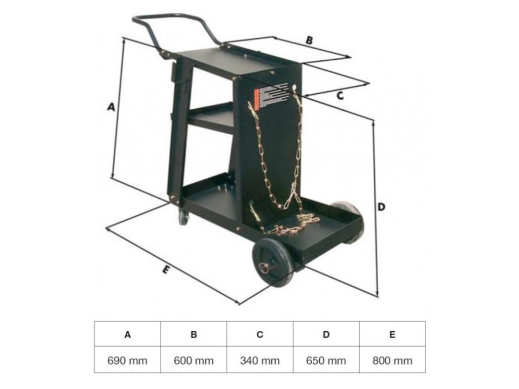 Multifunkčnosť a pohodlie: Vozík ponúka tri plošiny pre bezpečné odkladanie zváracieho príslušenstva, či už ide o zváracie drôty, masky alebo rukavice. S integrovaným hákom na zvárací horák a reťazami na upevnenie plynovej fľaše máte všetko potrebné vždy po ruke.